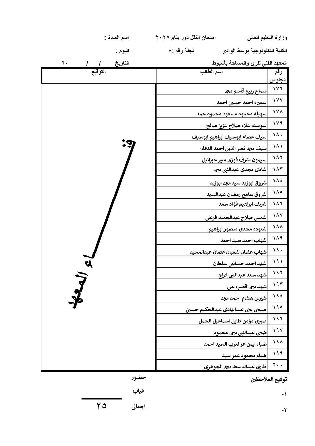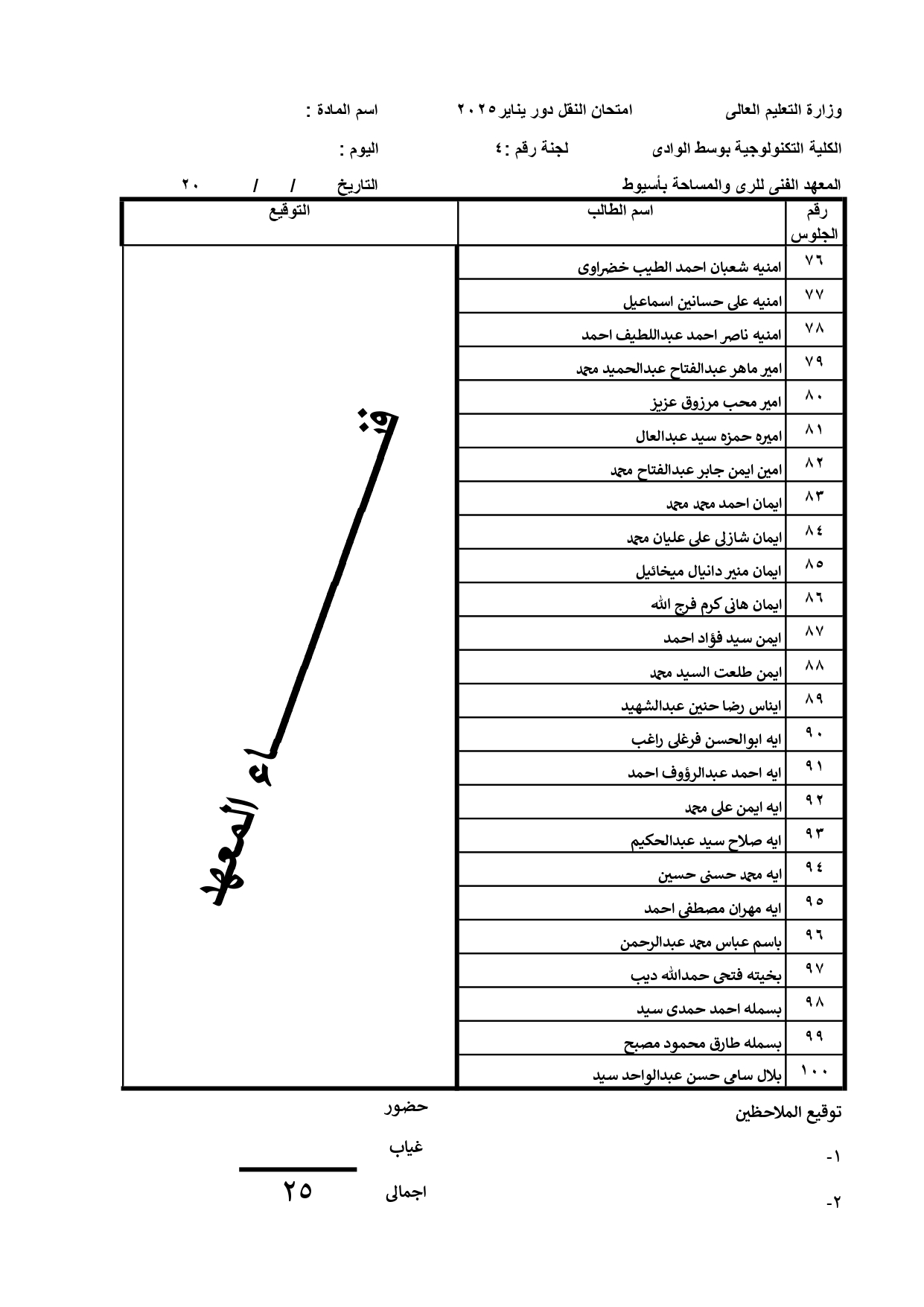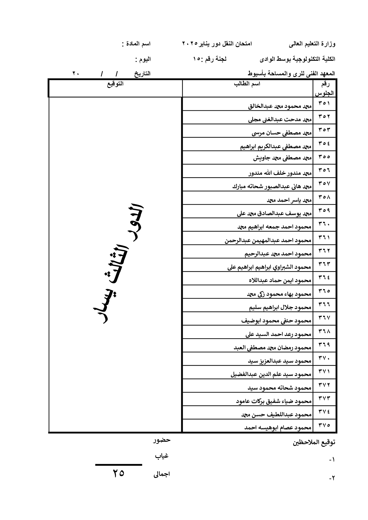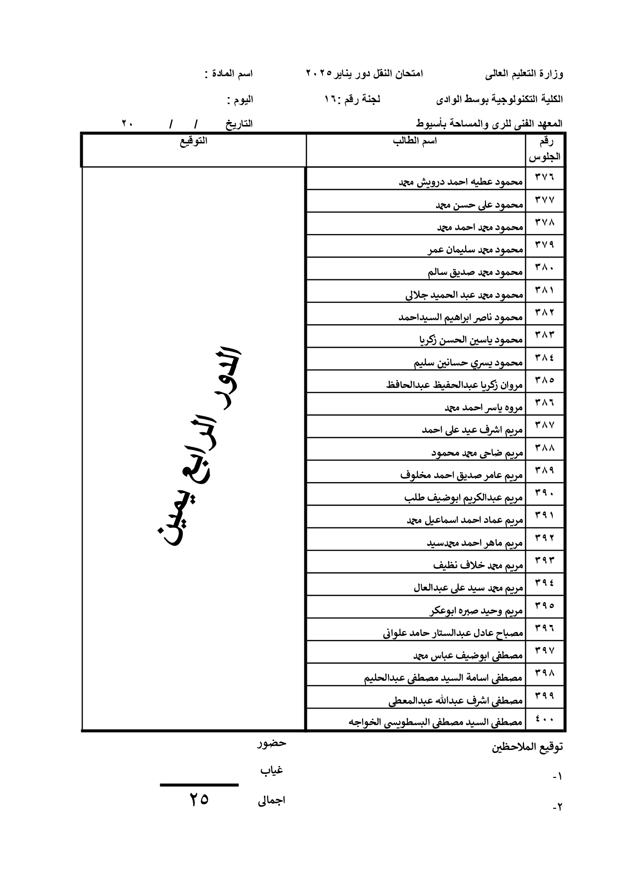 | الخميس | 2 /1 /2025 | تكنولوجيا معلومات | 10 | 12 |