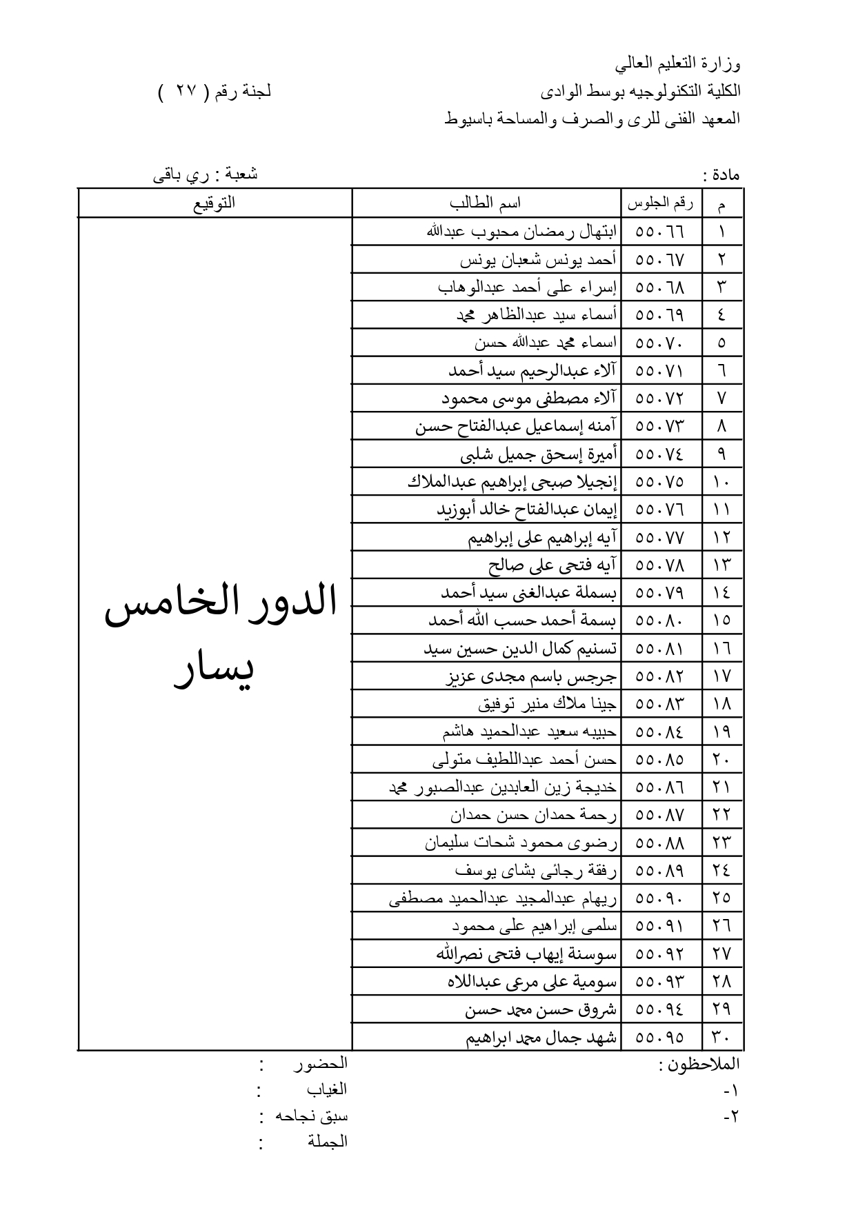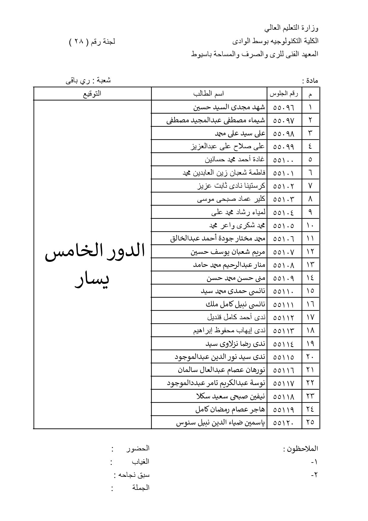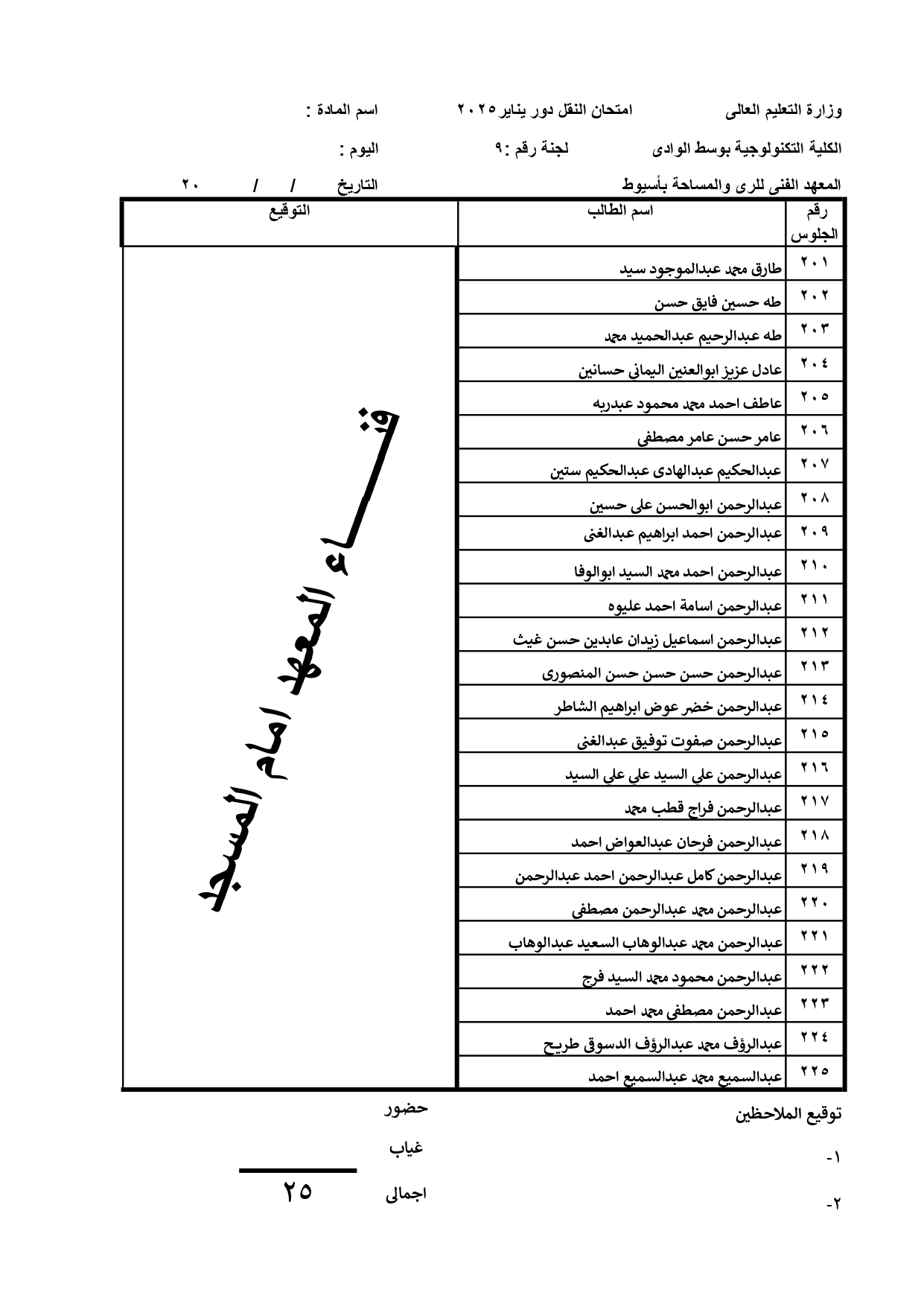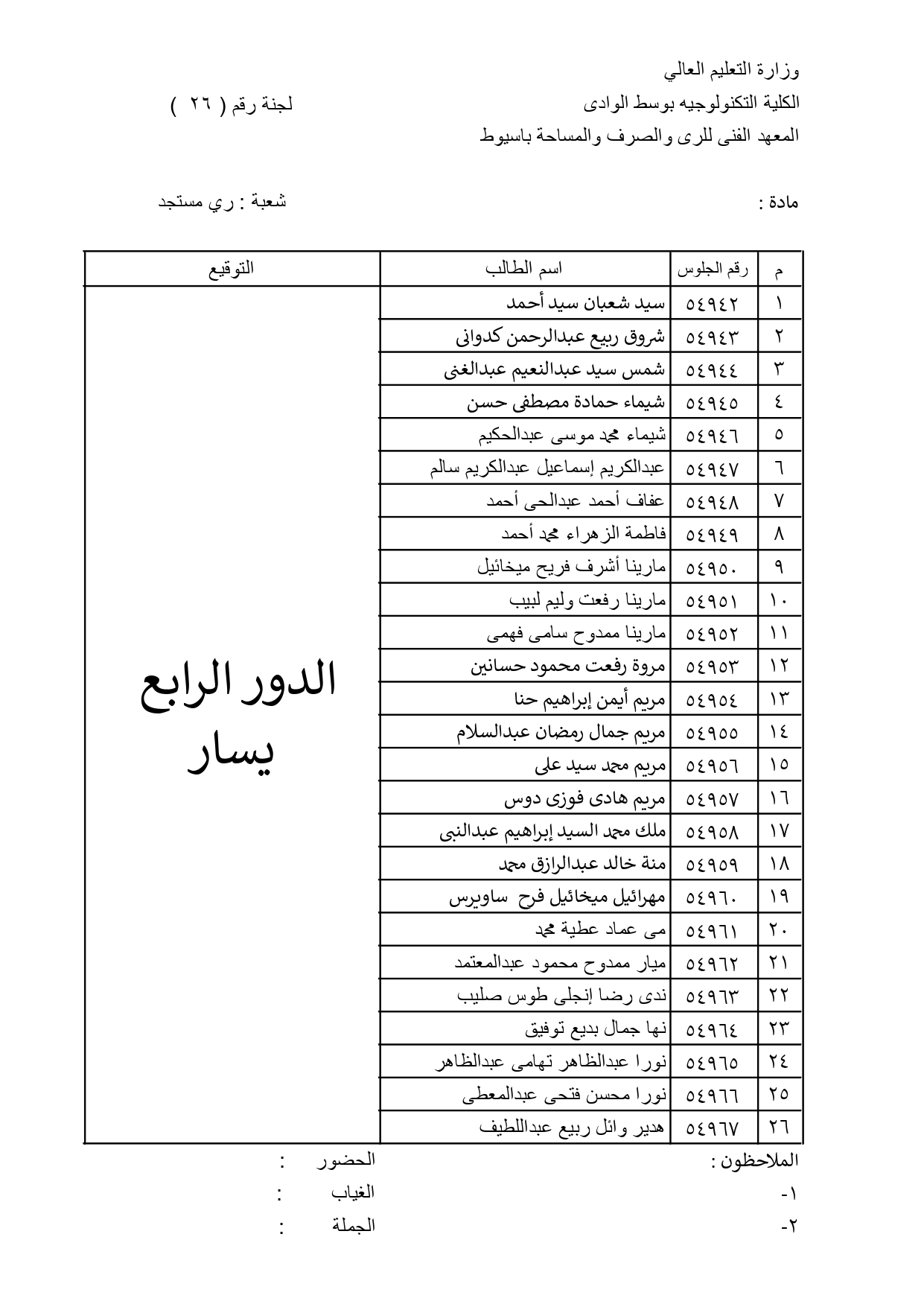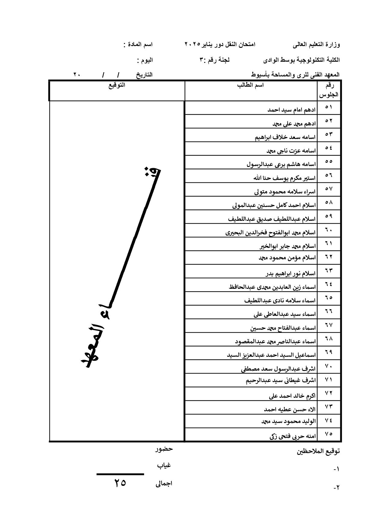 | الخميس | 2 /1 /2025 | تكنولوجيا معلومات | 10 | 12 |