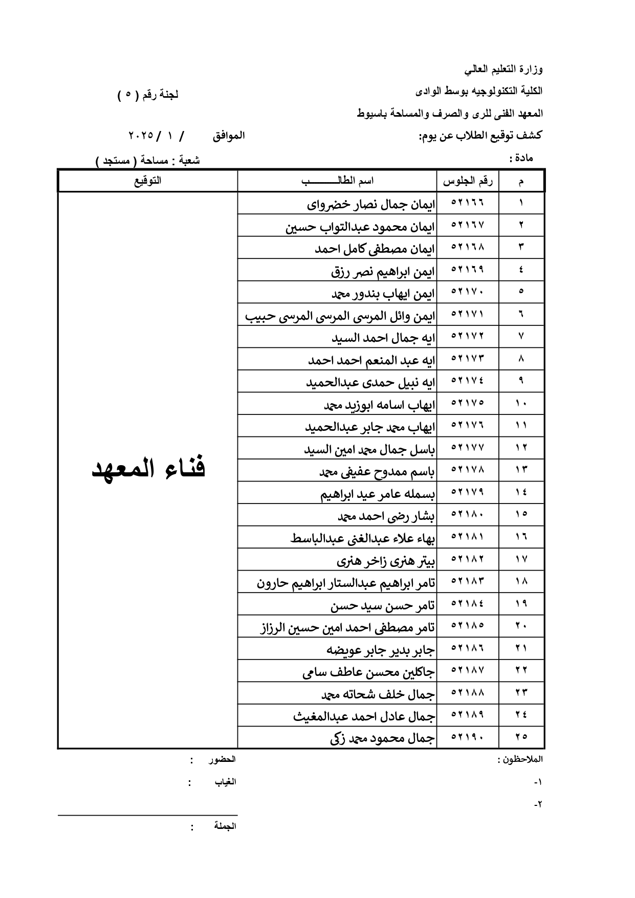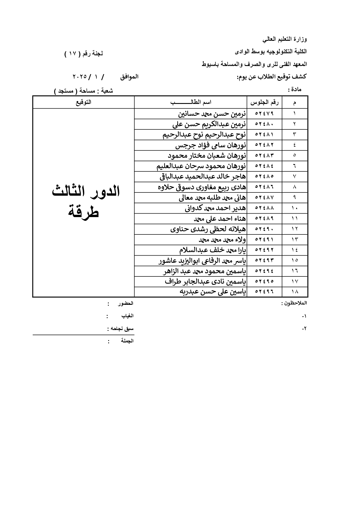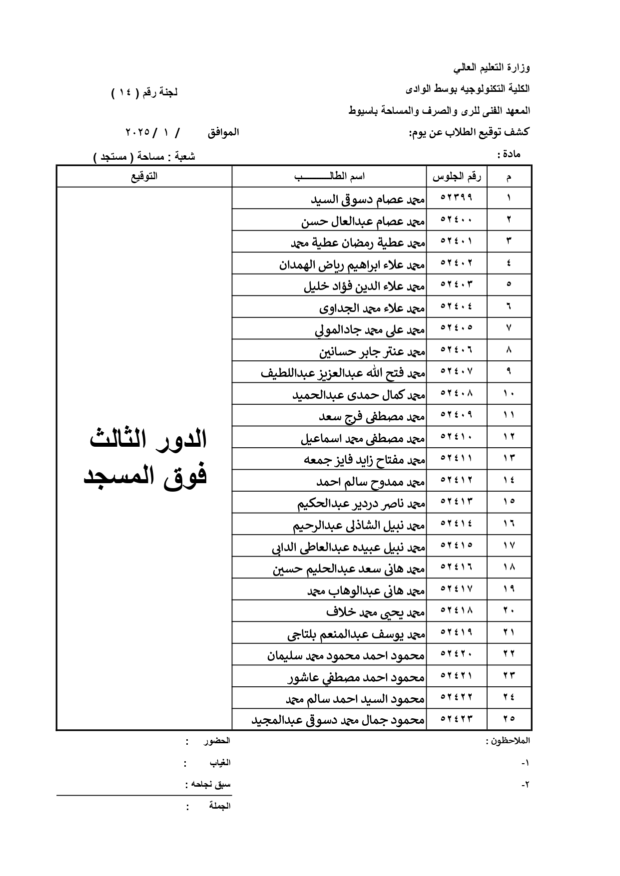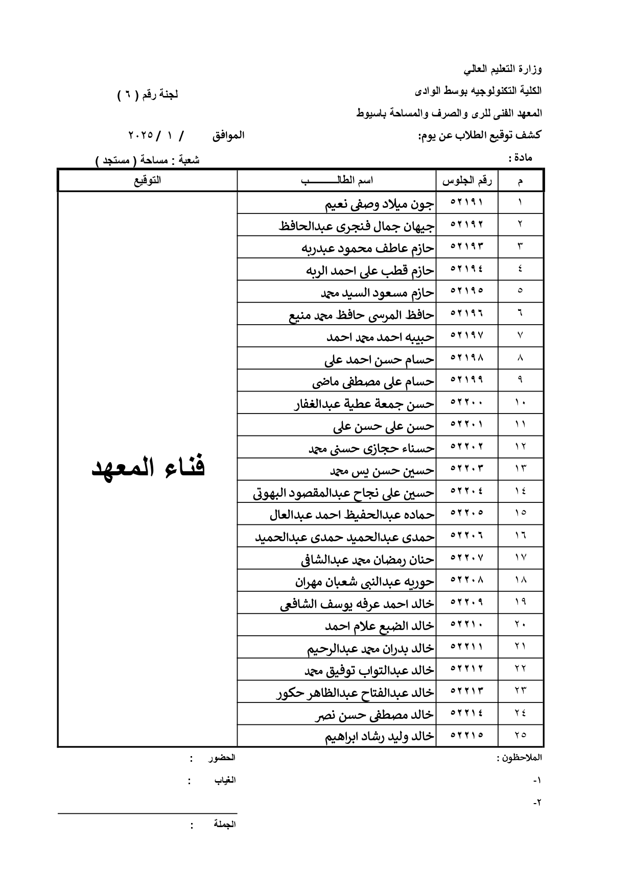| الثلاثاء | 31 /12 /2024 | اجهزة مساحية | 10 | 12 |