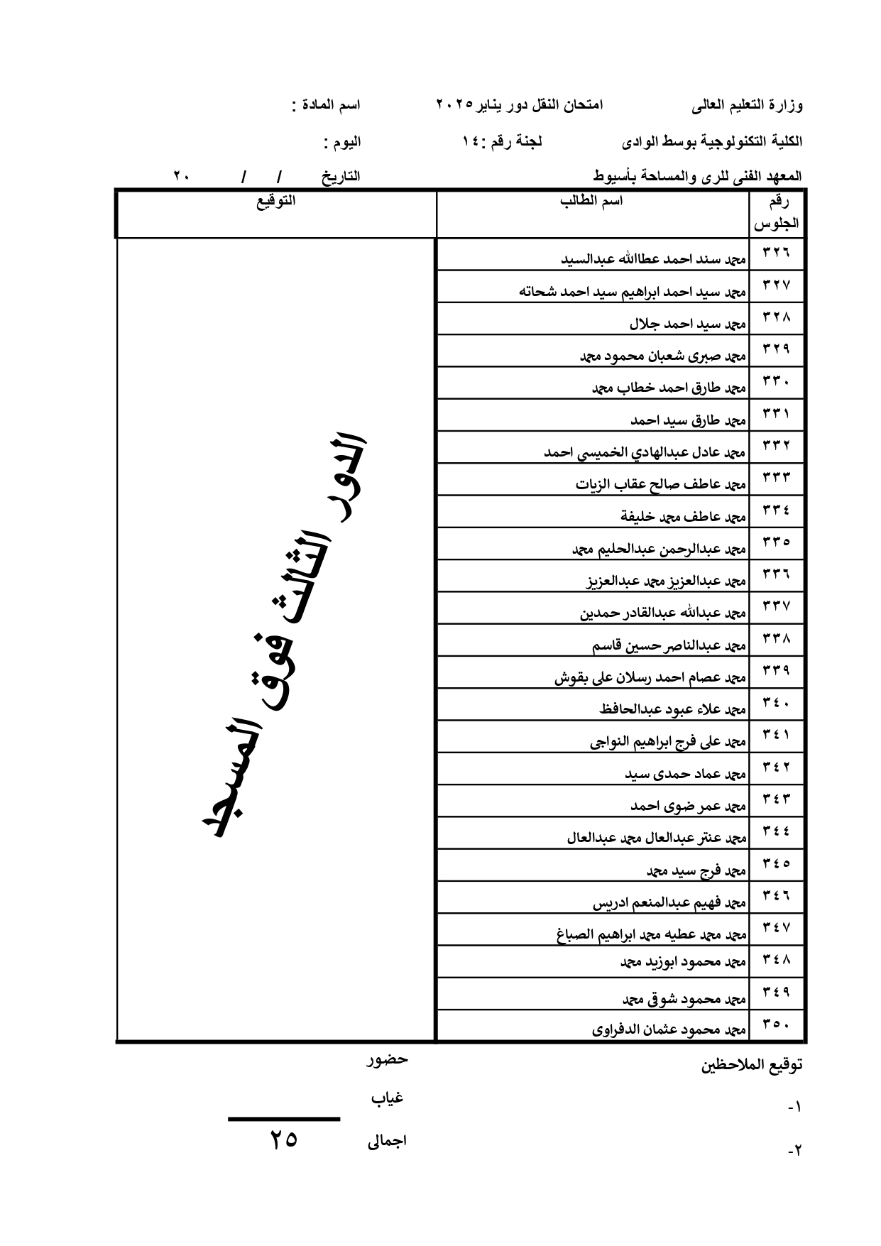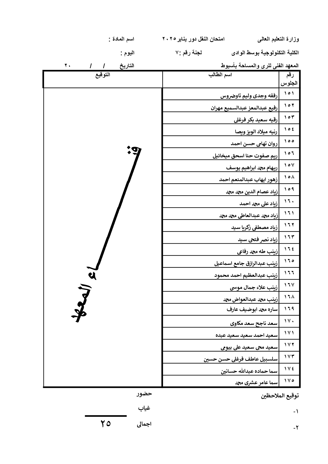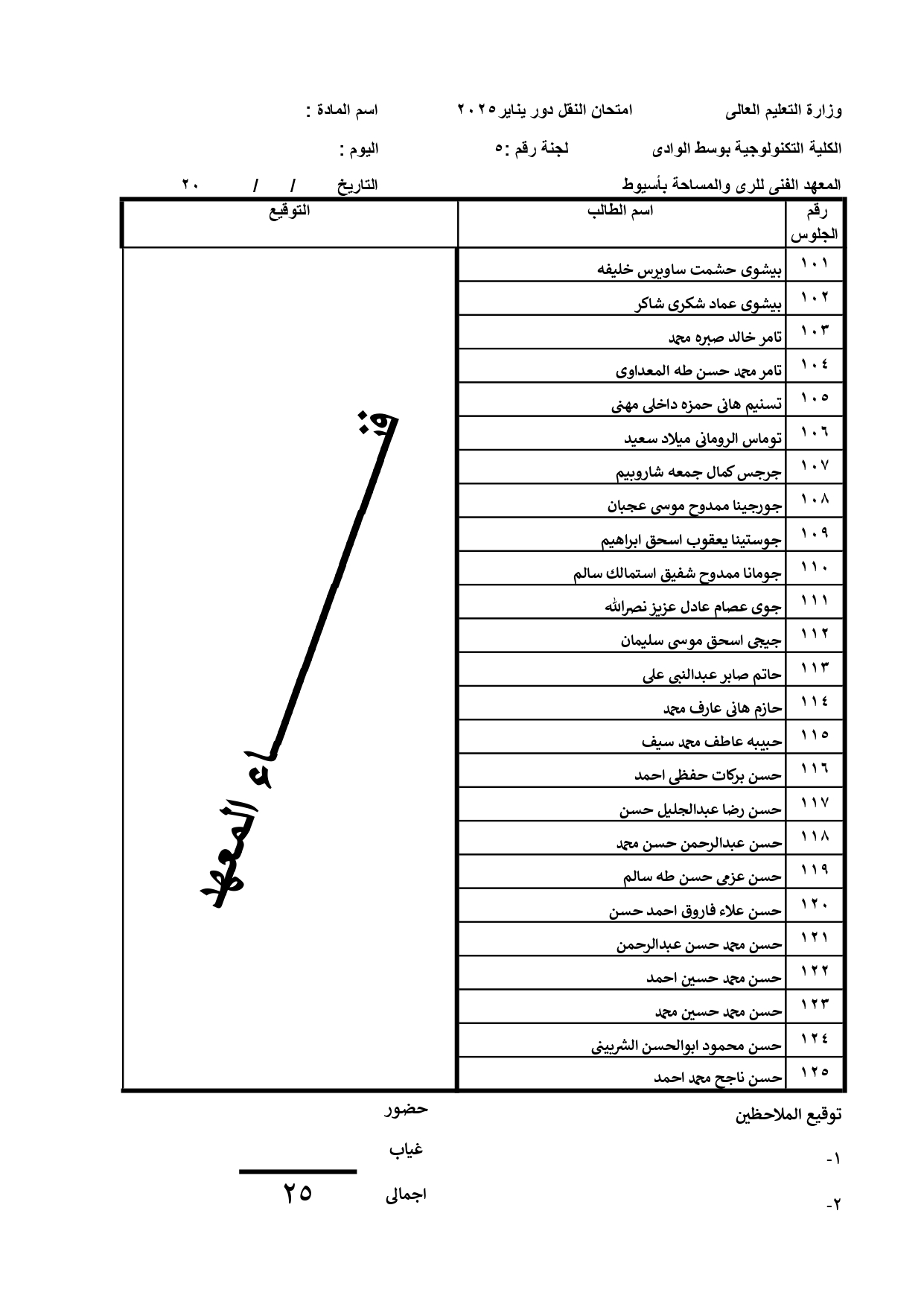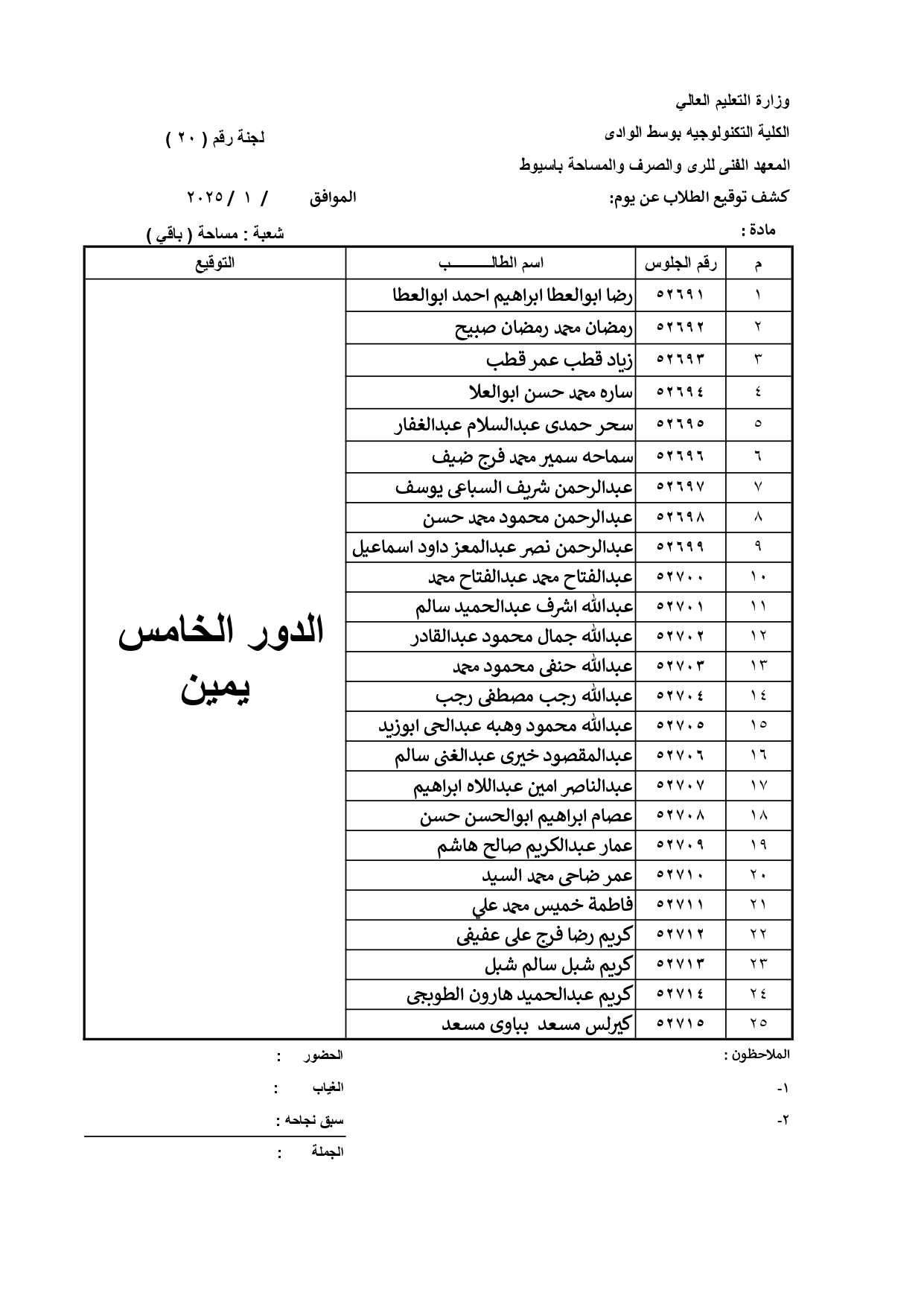 | الثلاثاء | 31 /12 /2024 | اجهزة مساحية | 10 | 12 |