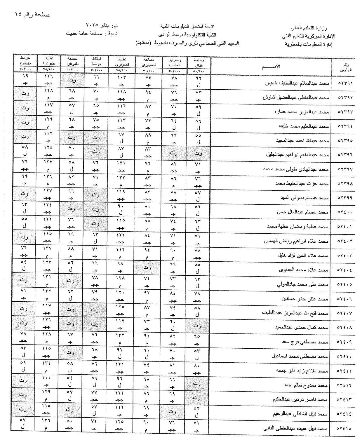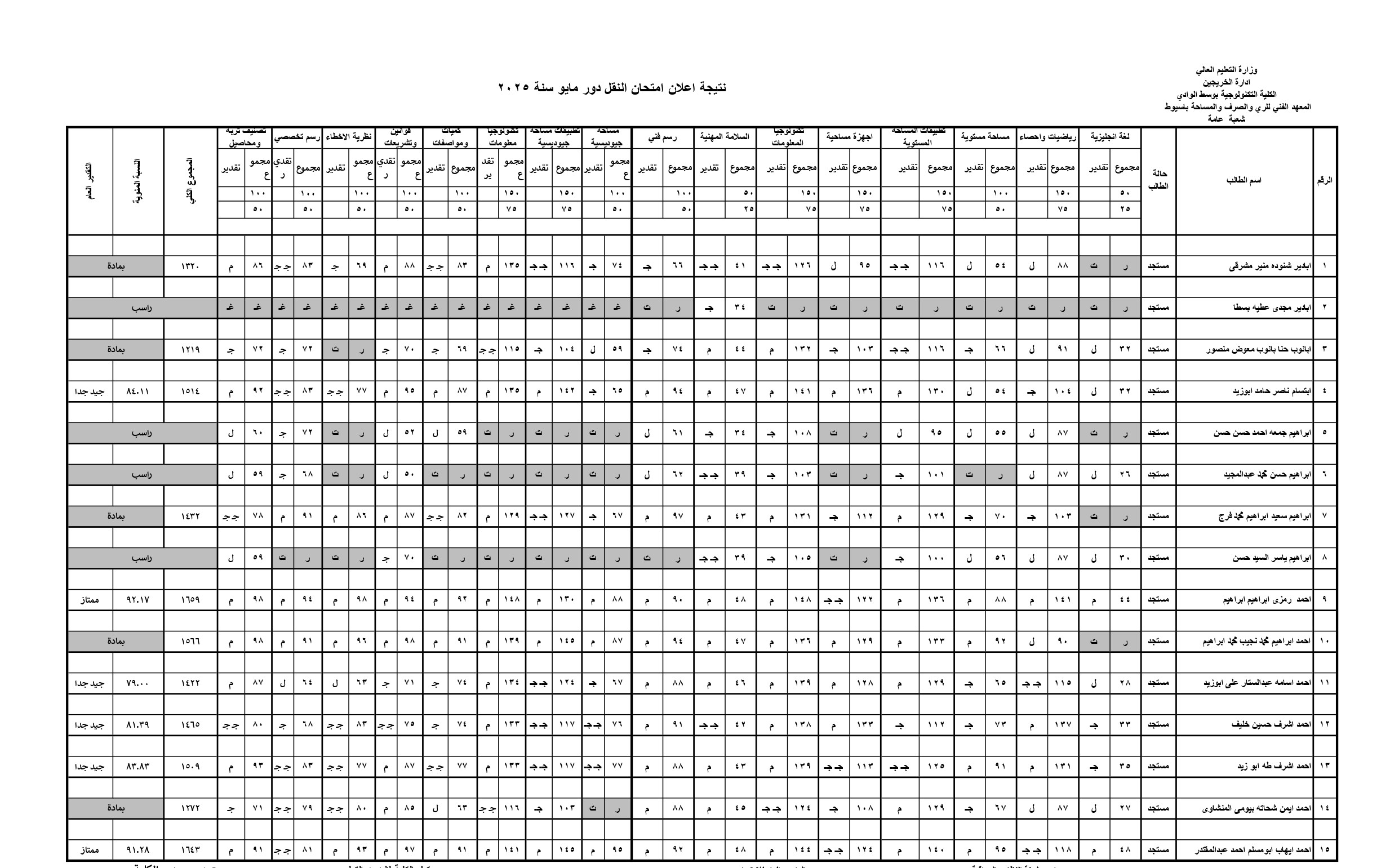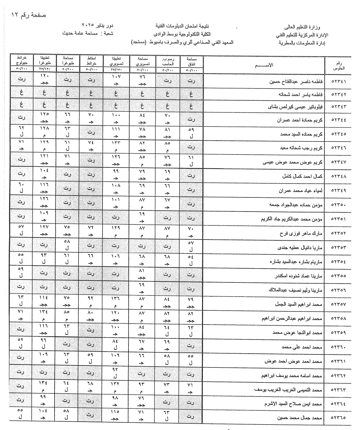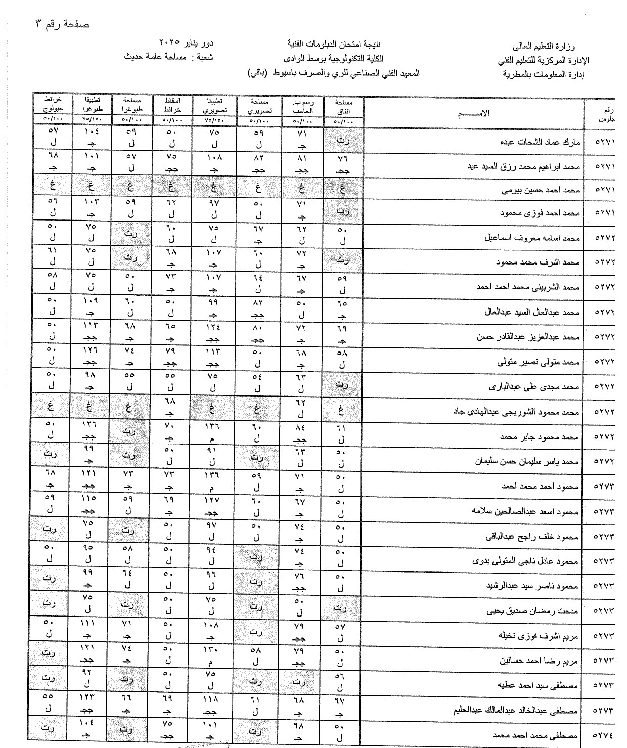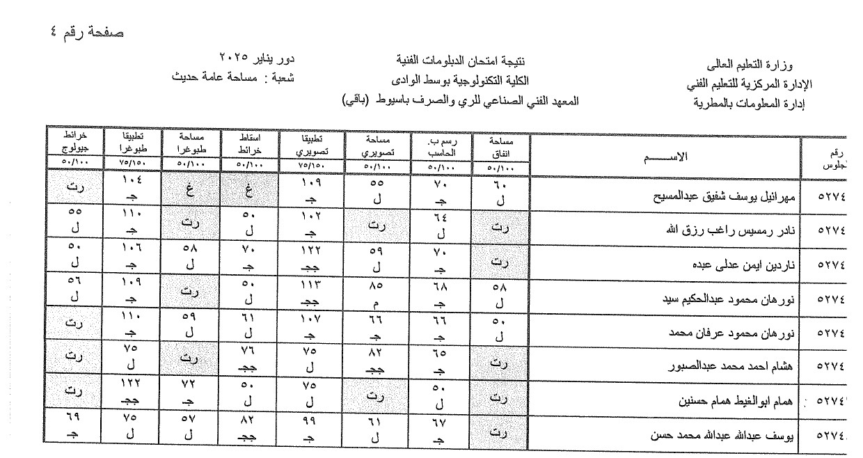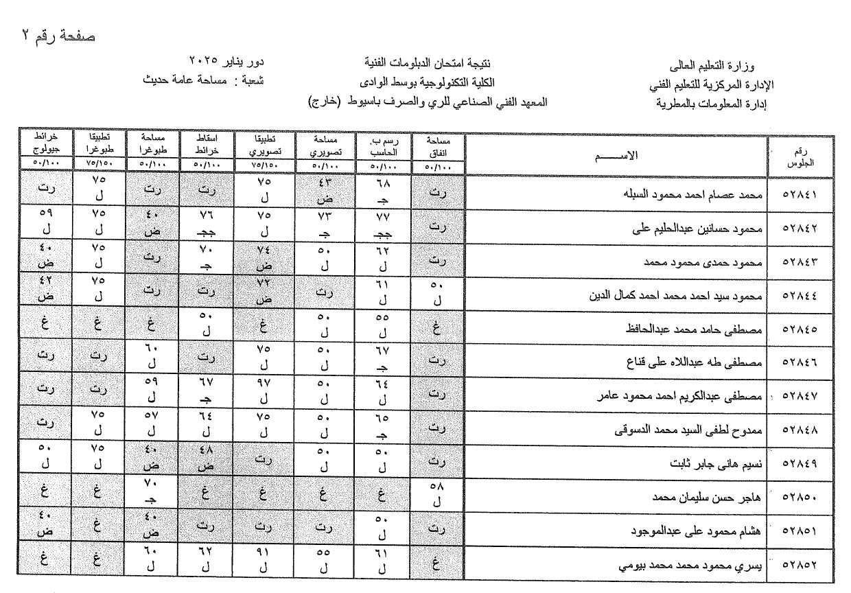 نتيجة الفرقة الثانية شعبة مساحة دور يناير 2025