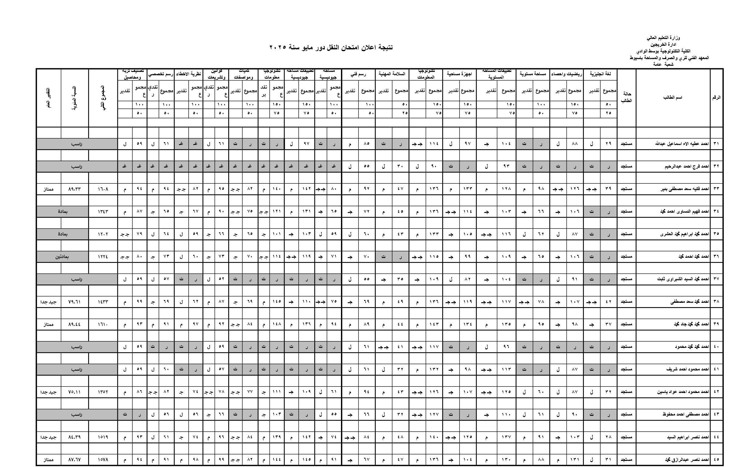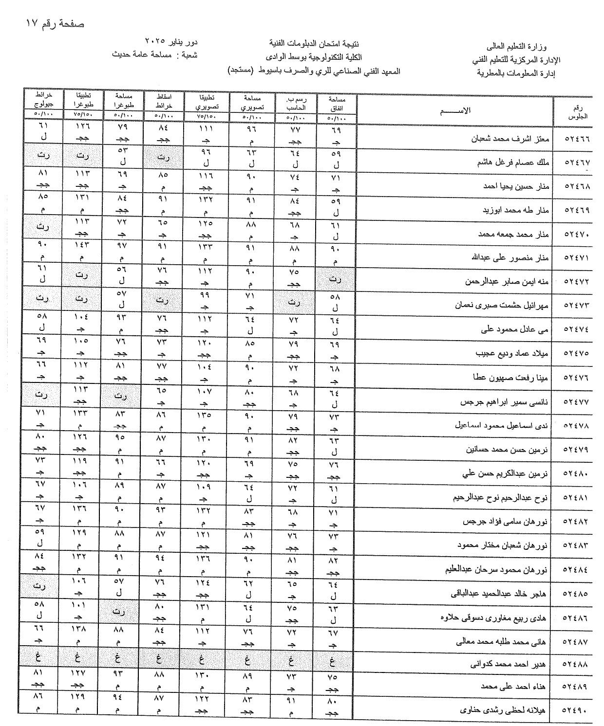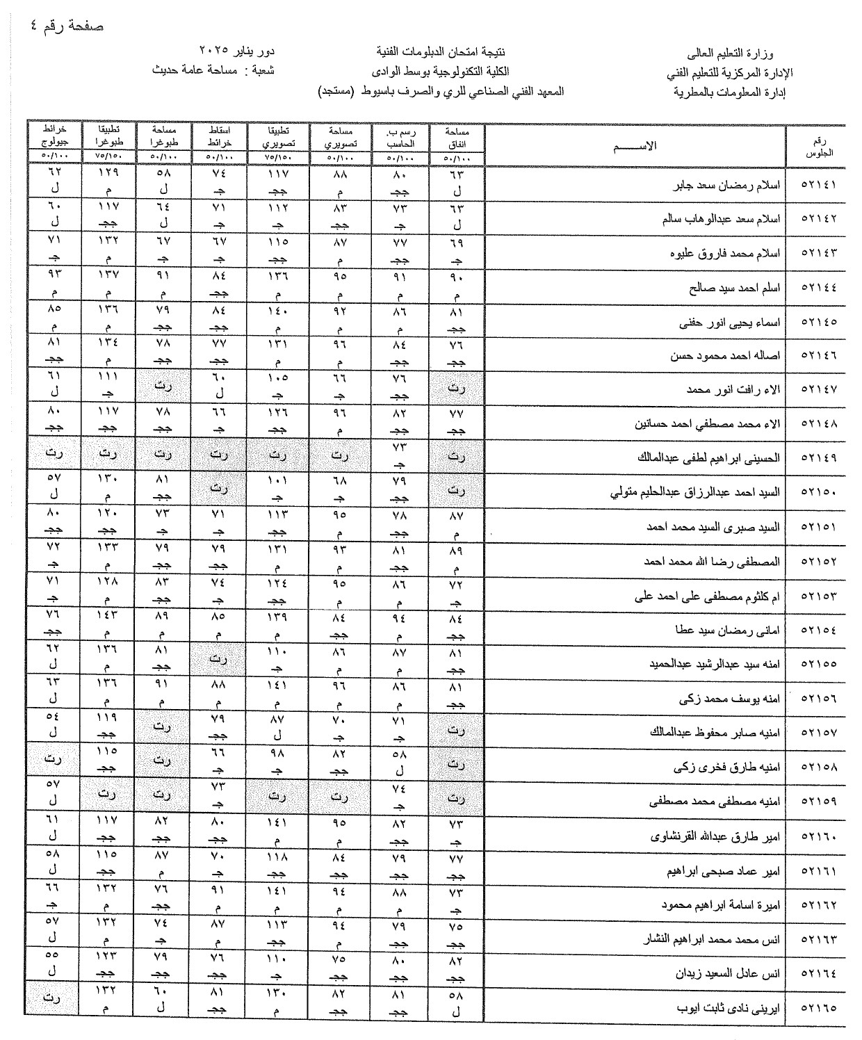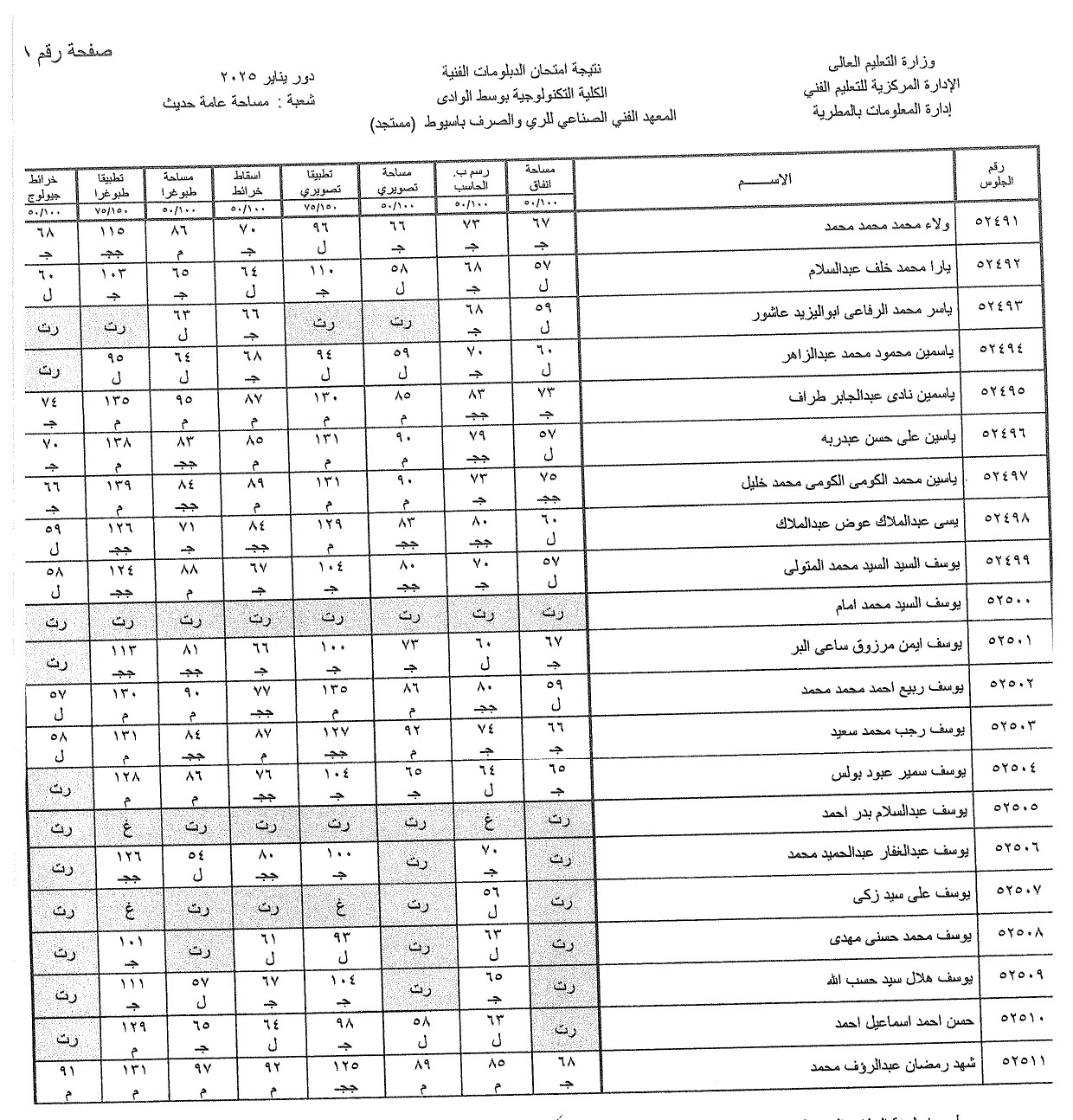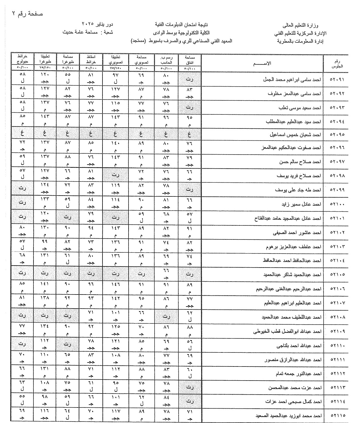 نتيجة الفرقة الثانية شعبة مساحة دور يناير 2025