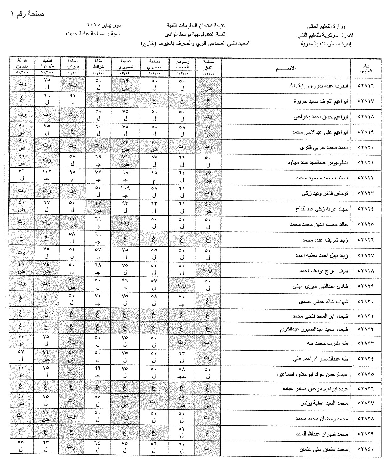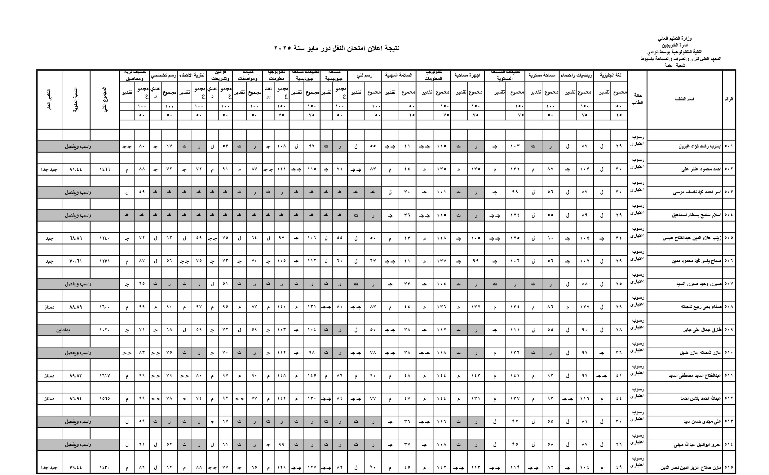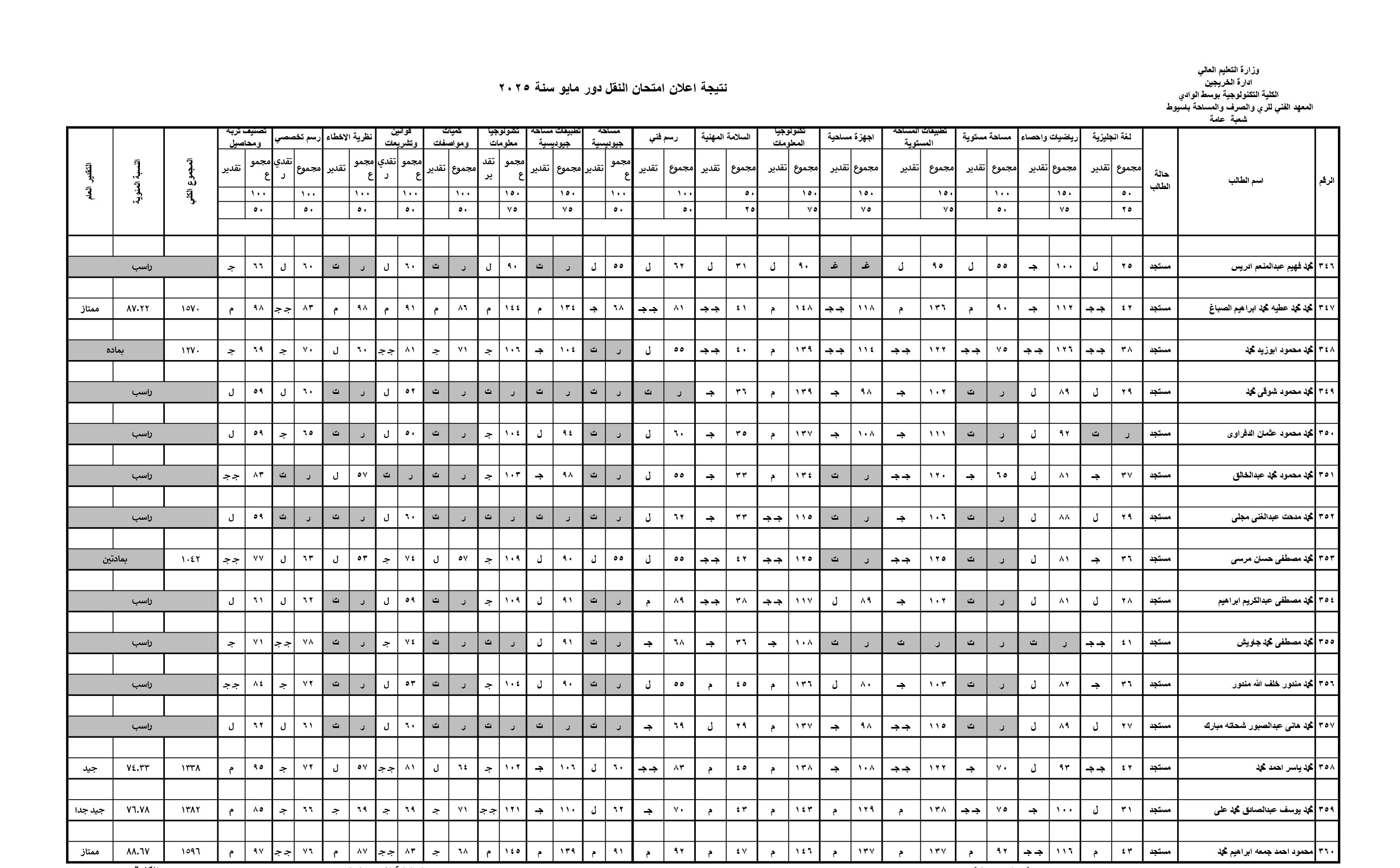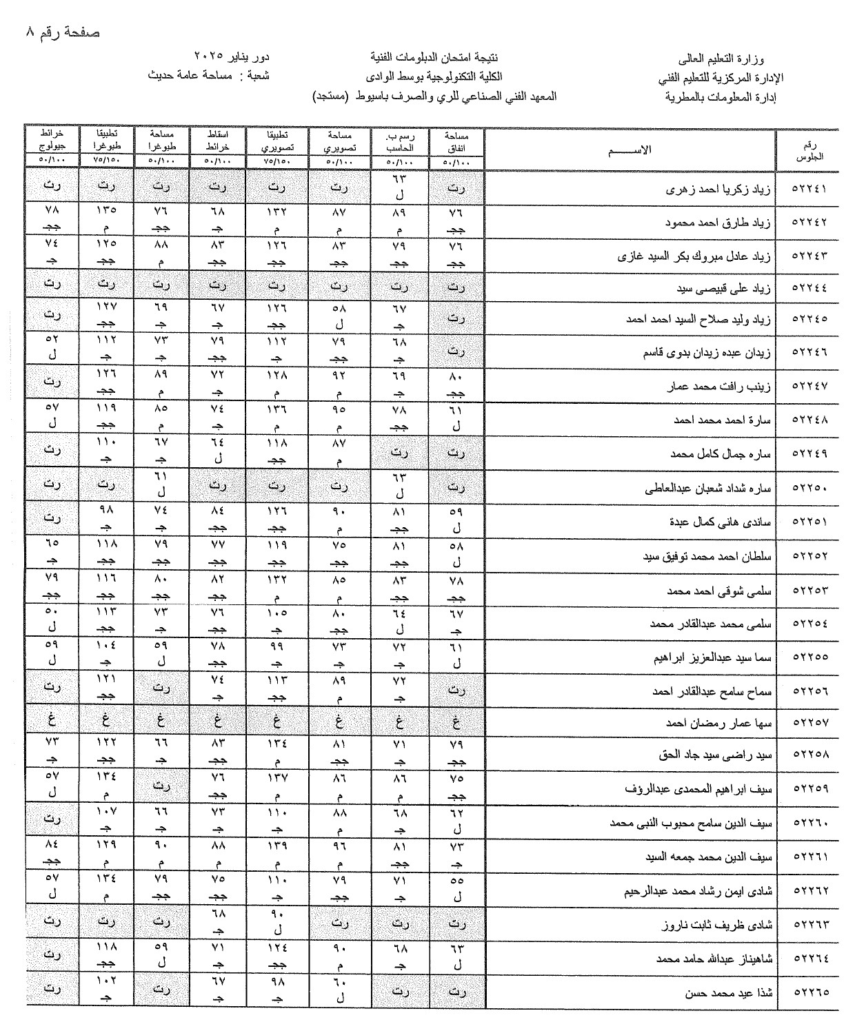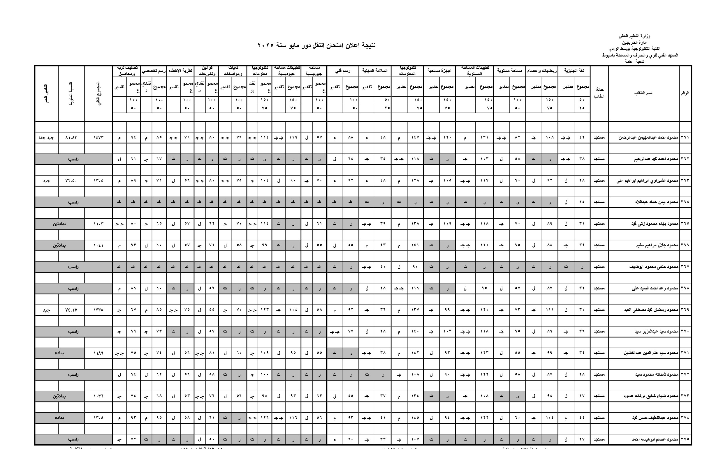 نتيجة الفرقة الثانية شعبة مساحة دور يناير 2025