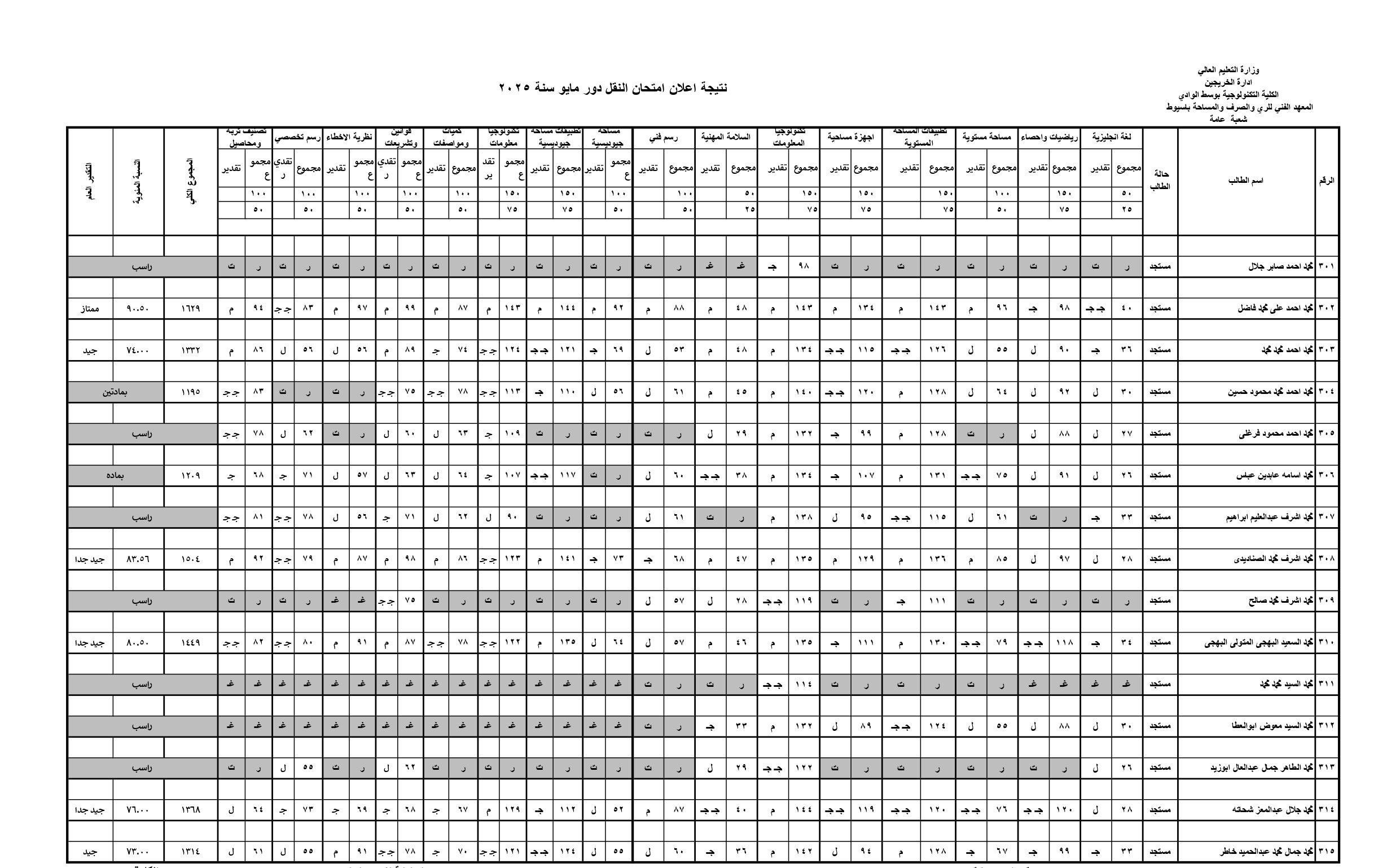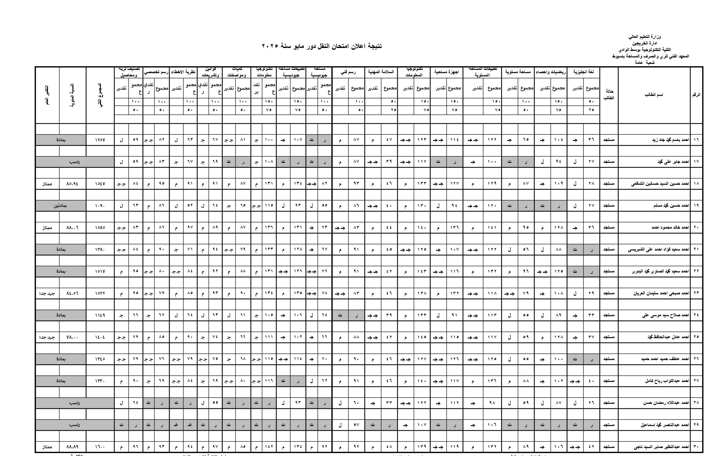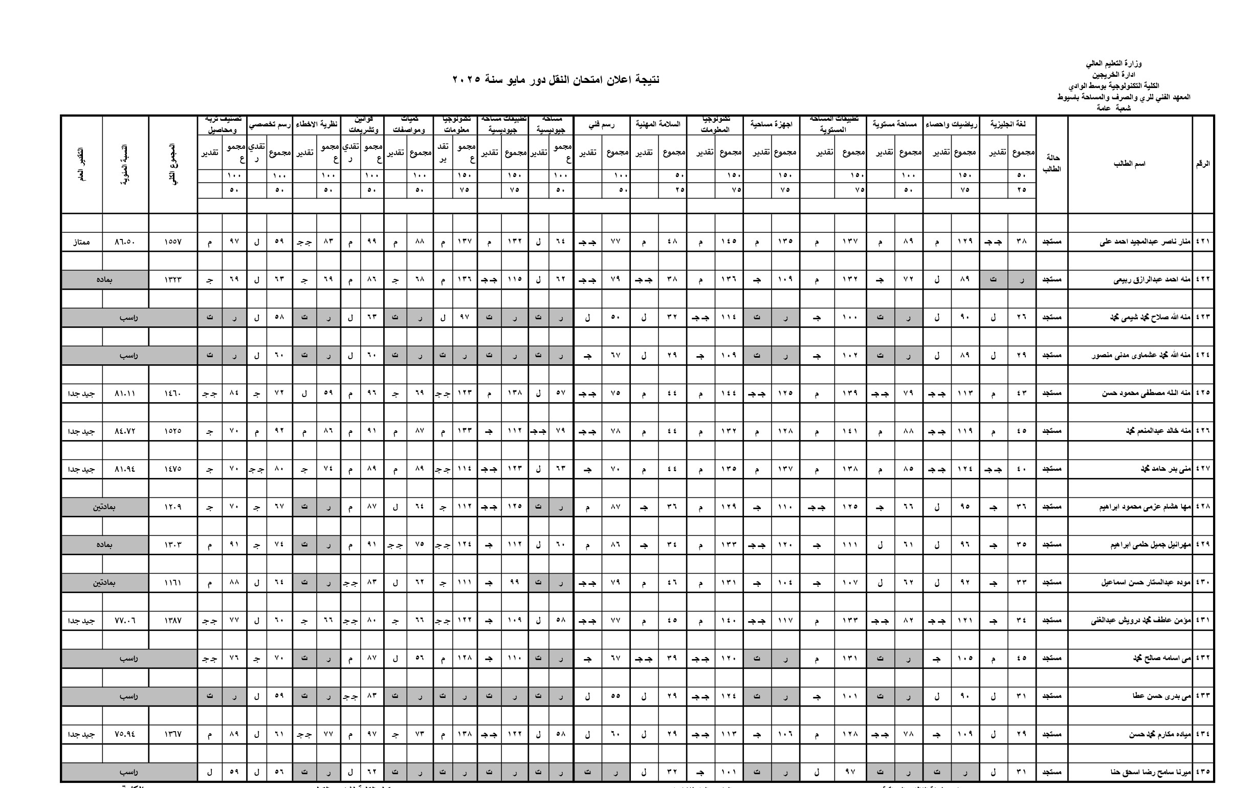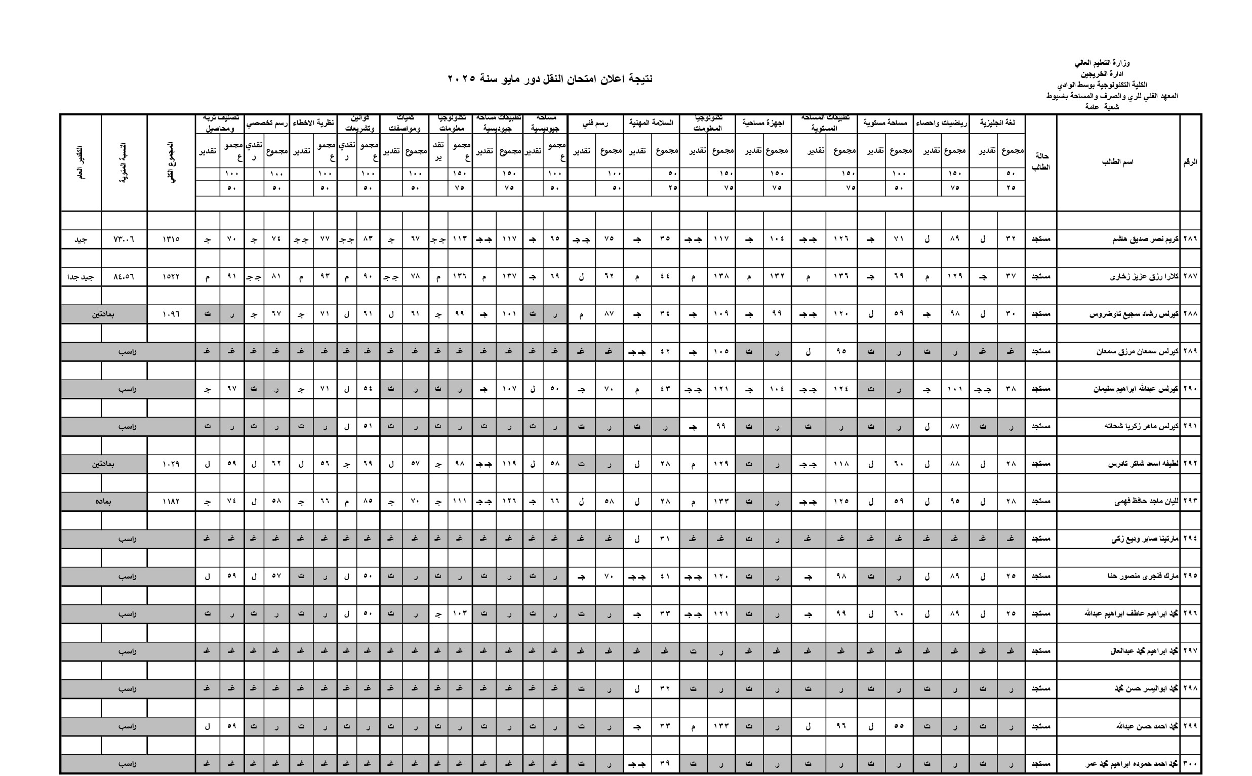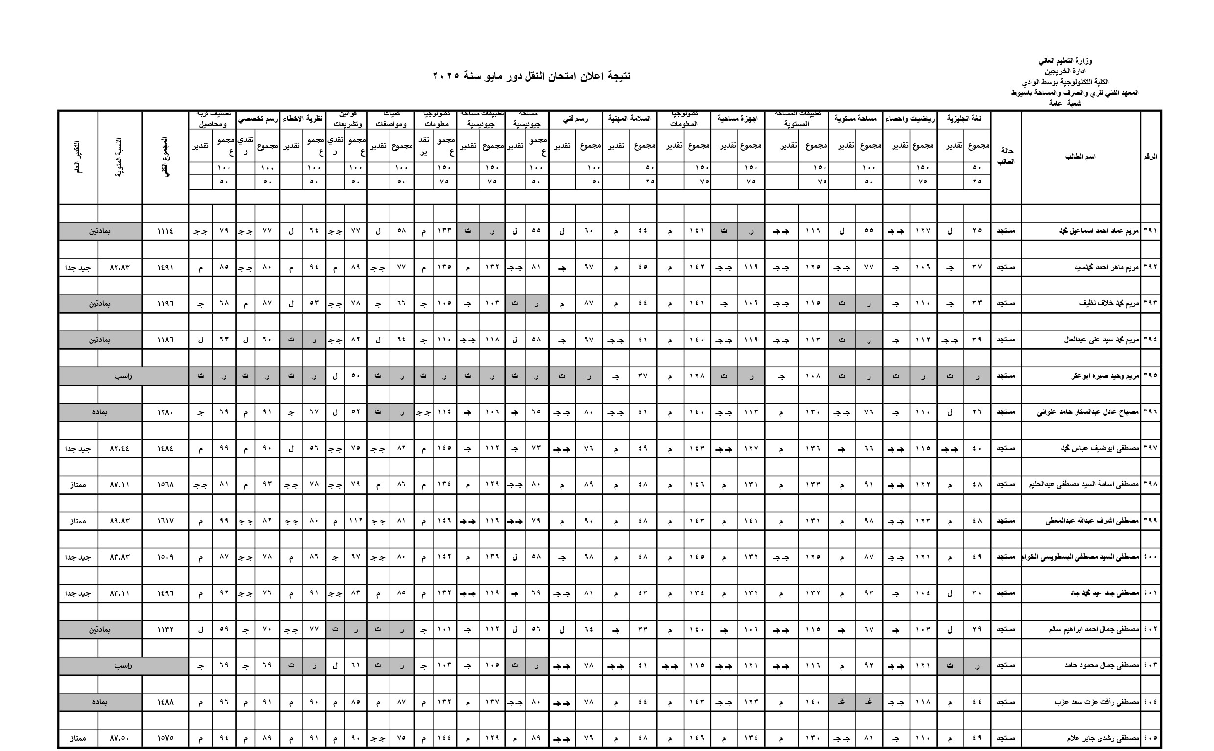 نتيجة الفرقة الثانية شعبة مساحة دور يناير 2025