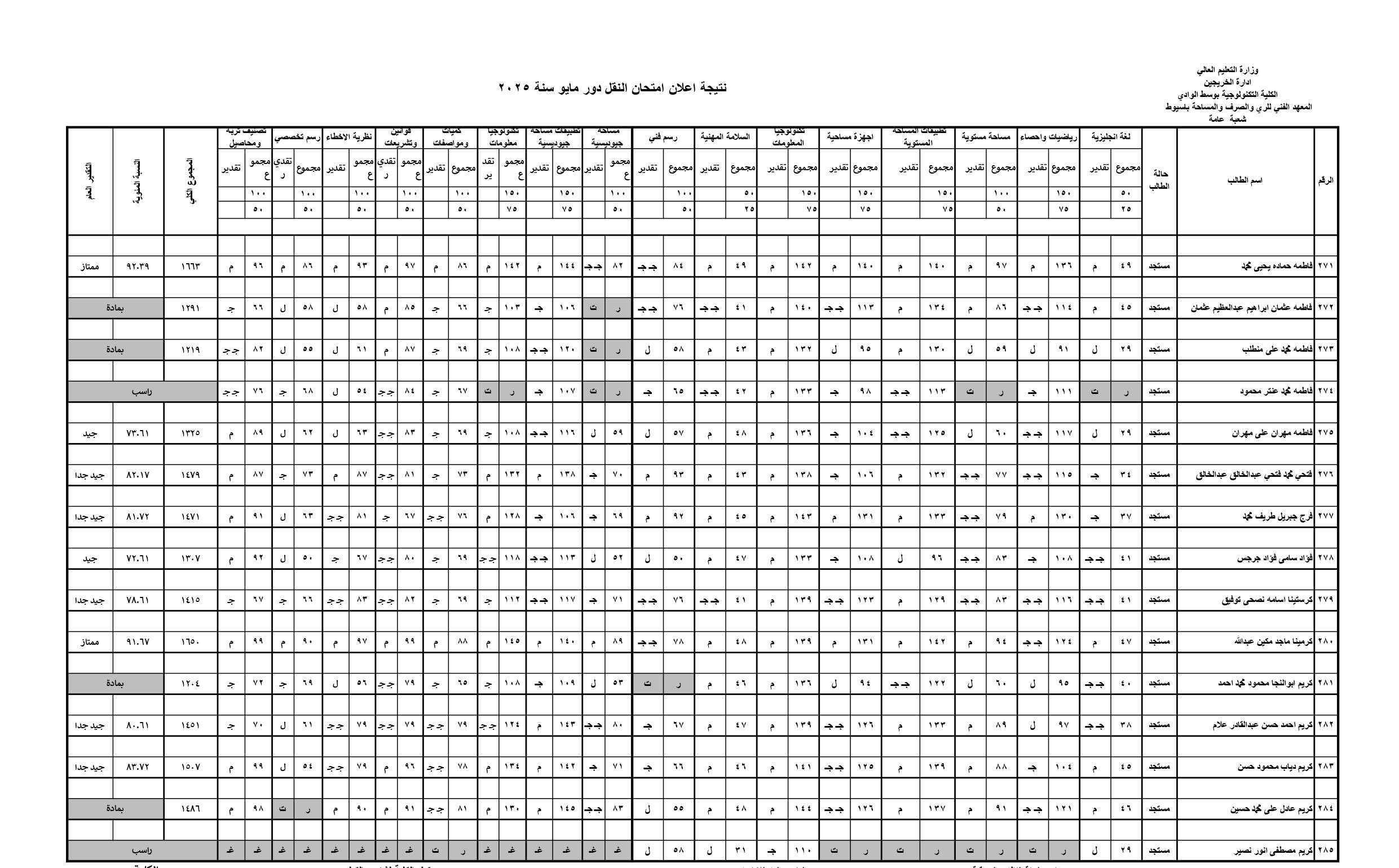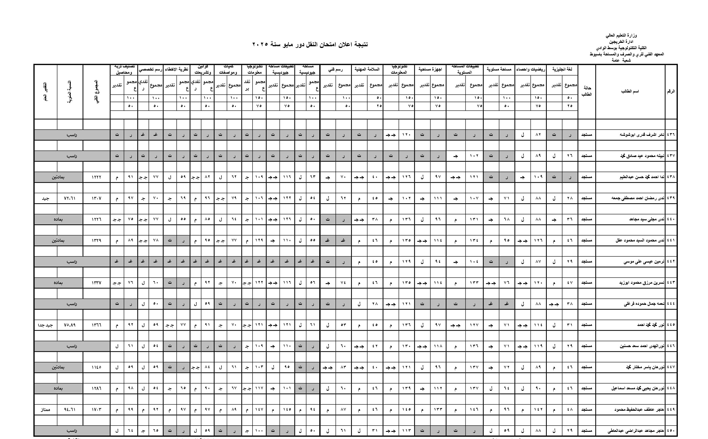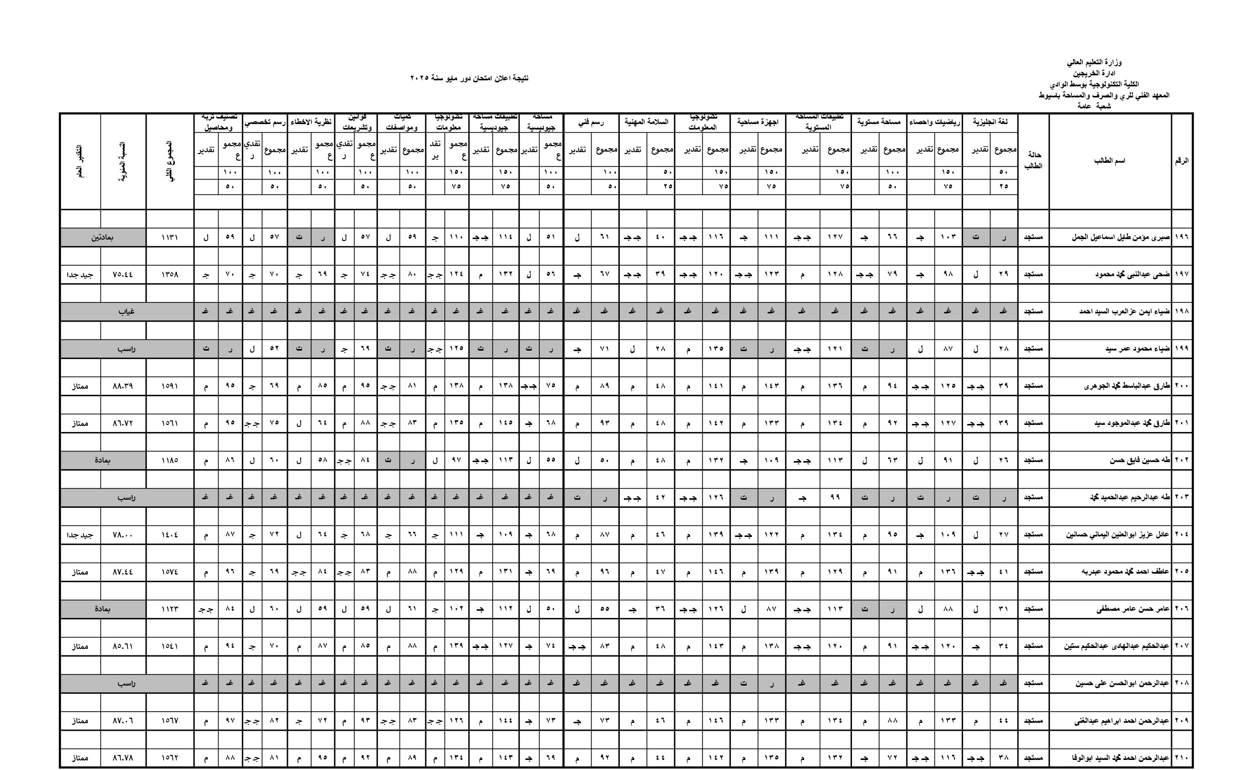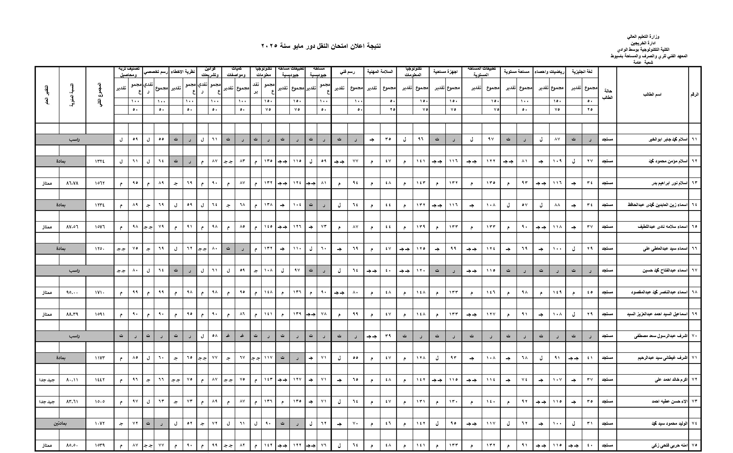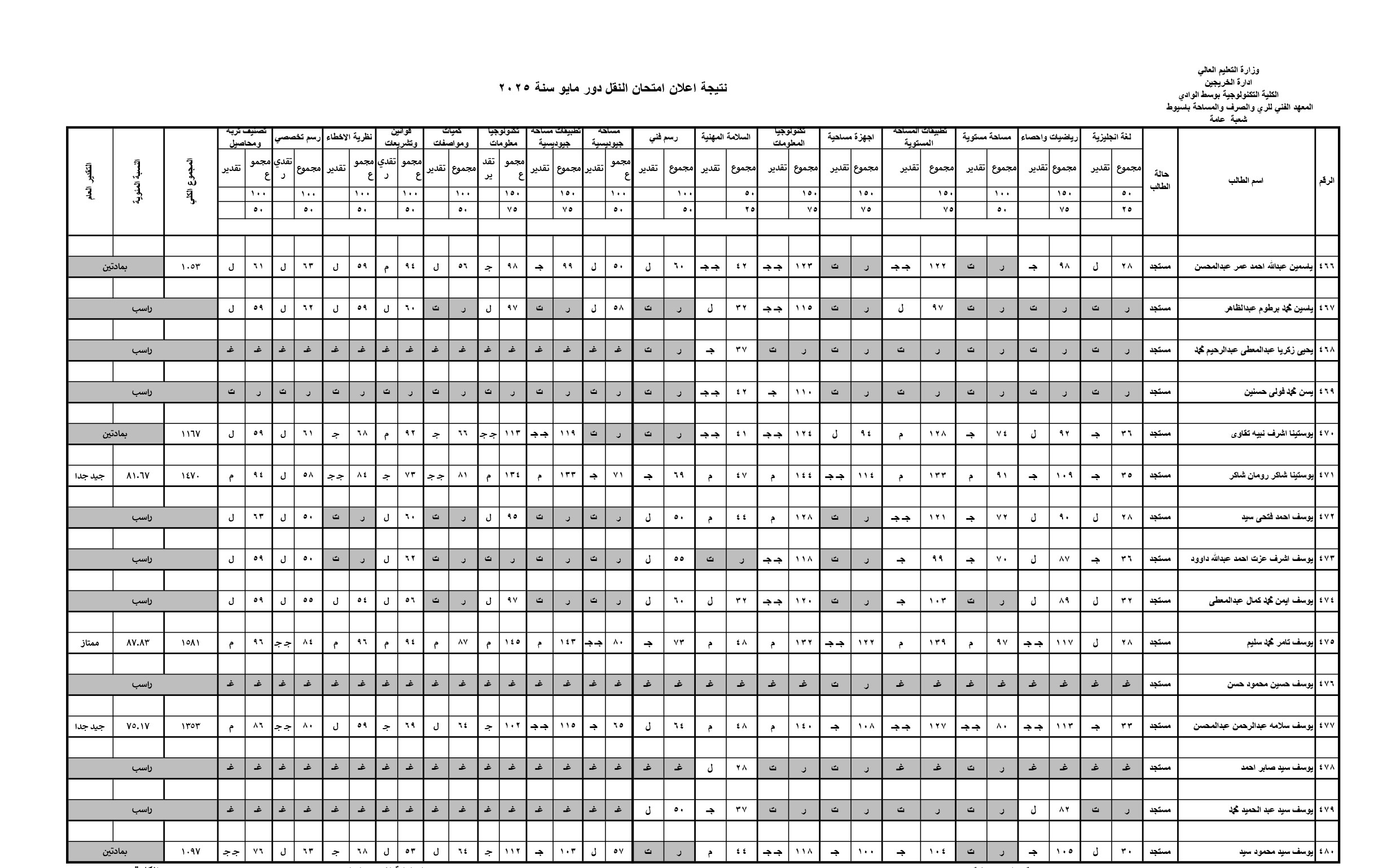 نتيجة الفرقة الثانية شعبة مساحة دور يناير 2025