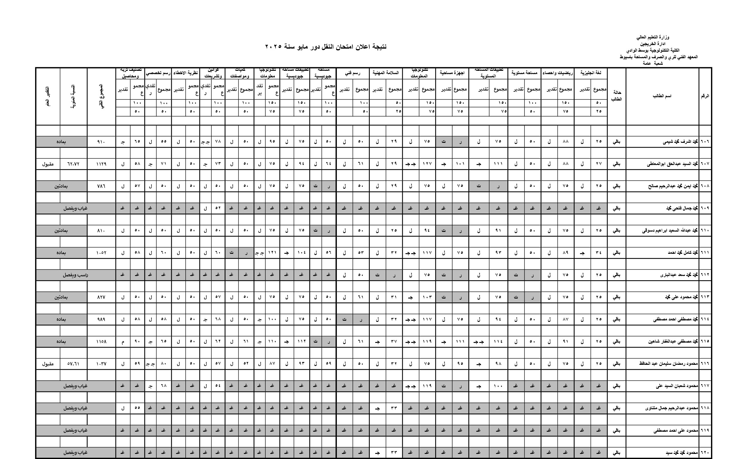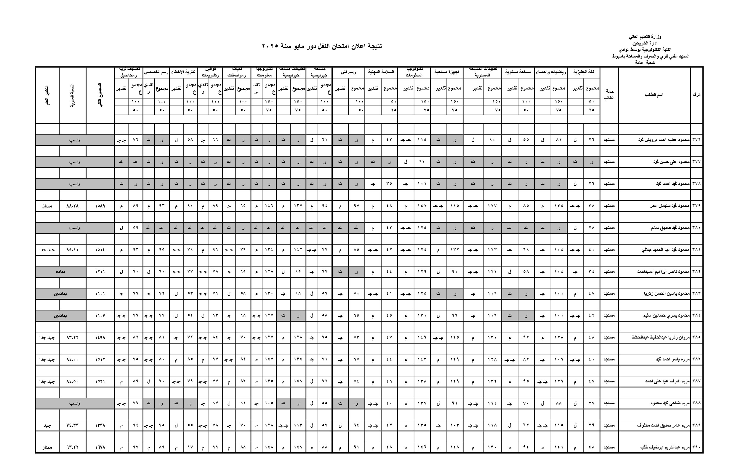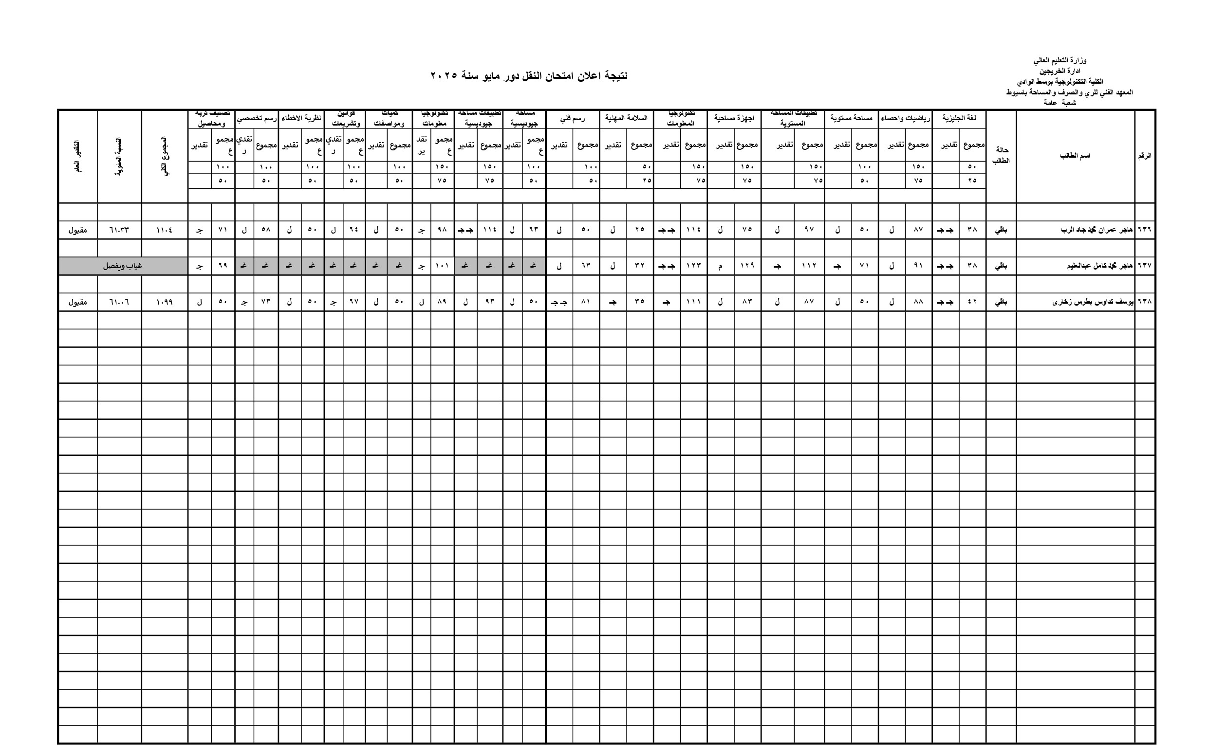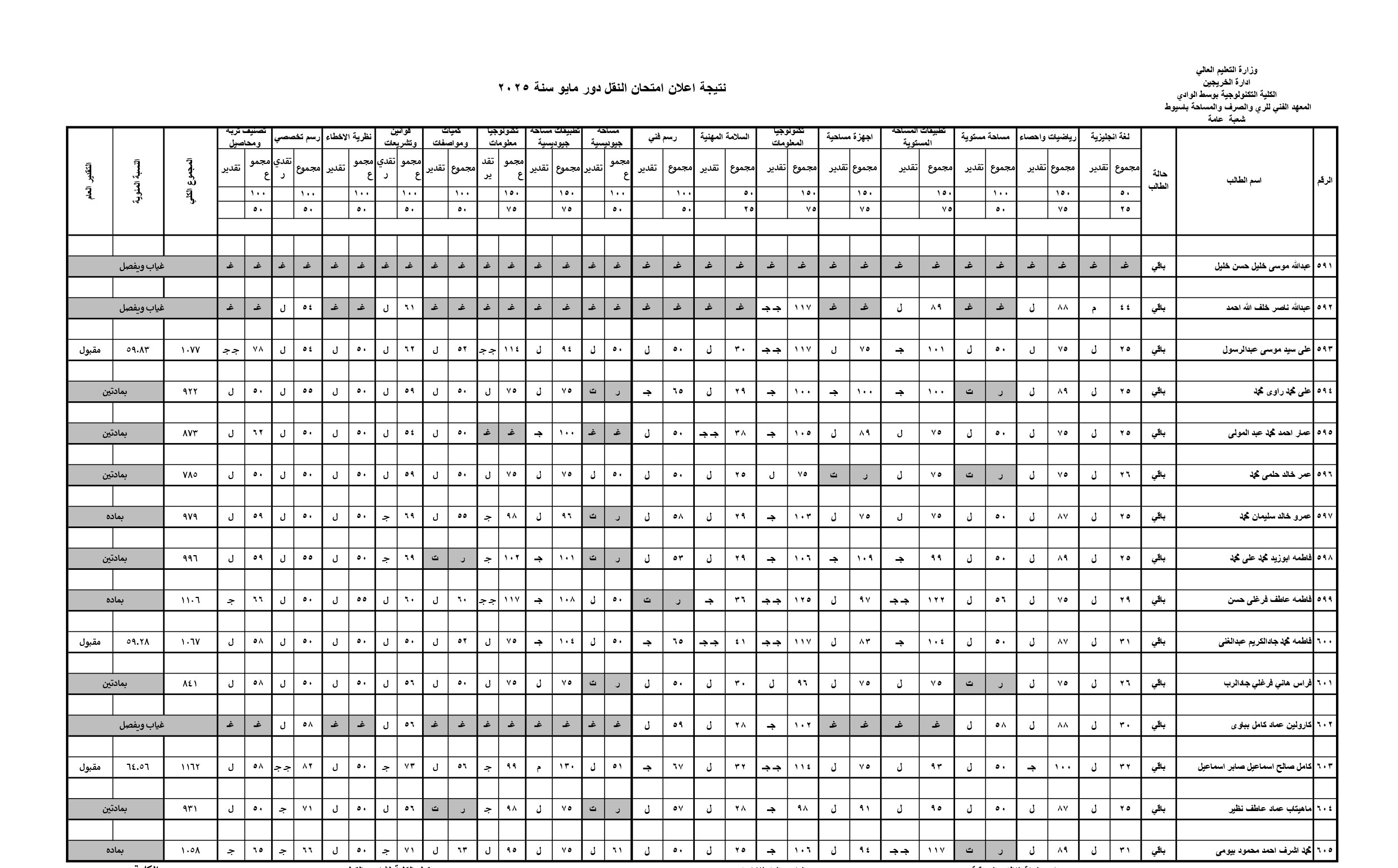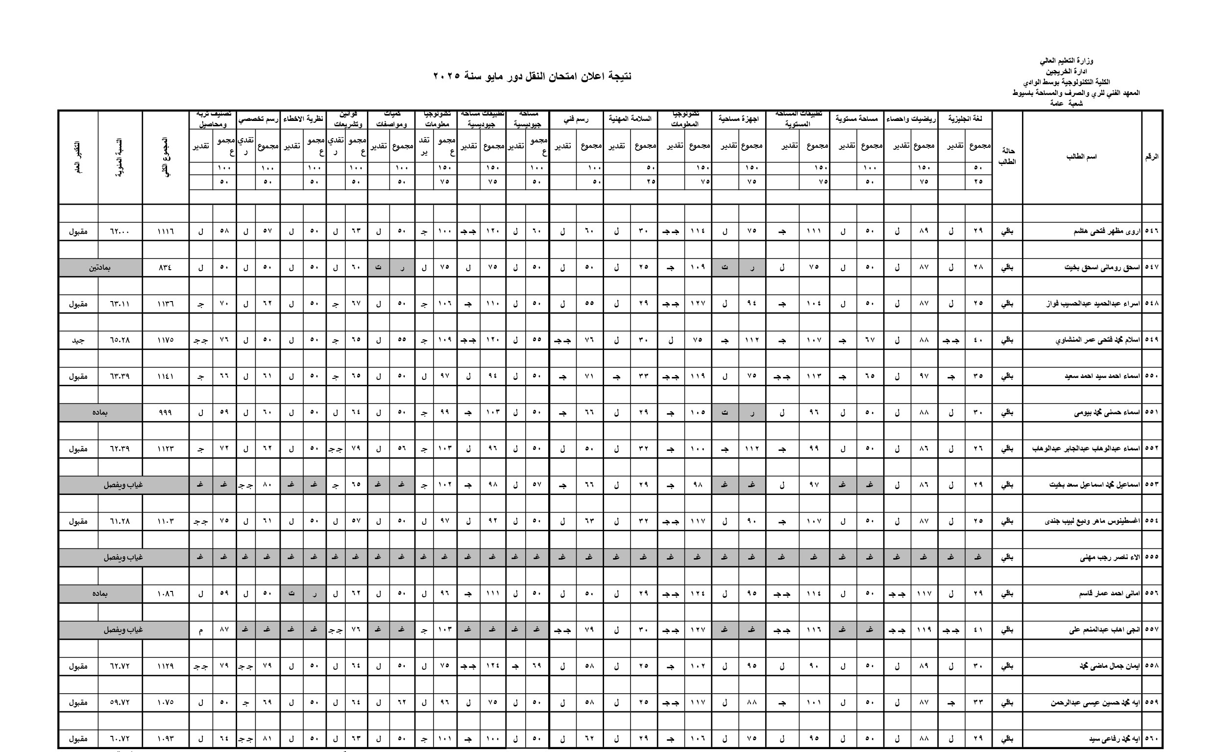 نتيجة الفرقة الثانية شعبة مساحة دور يناير 2025