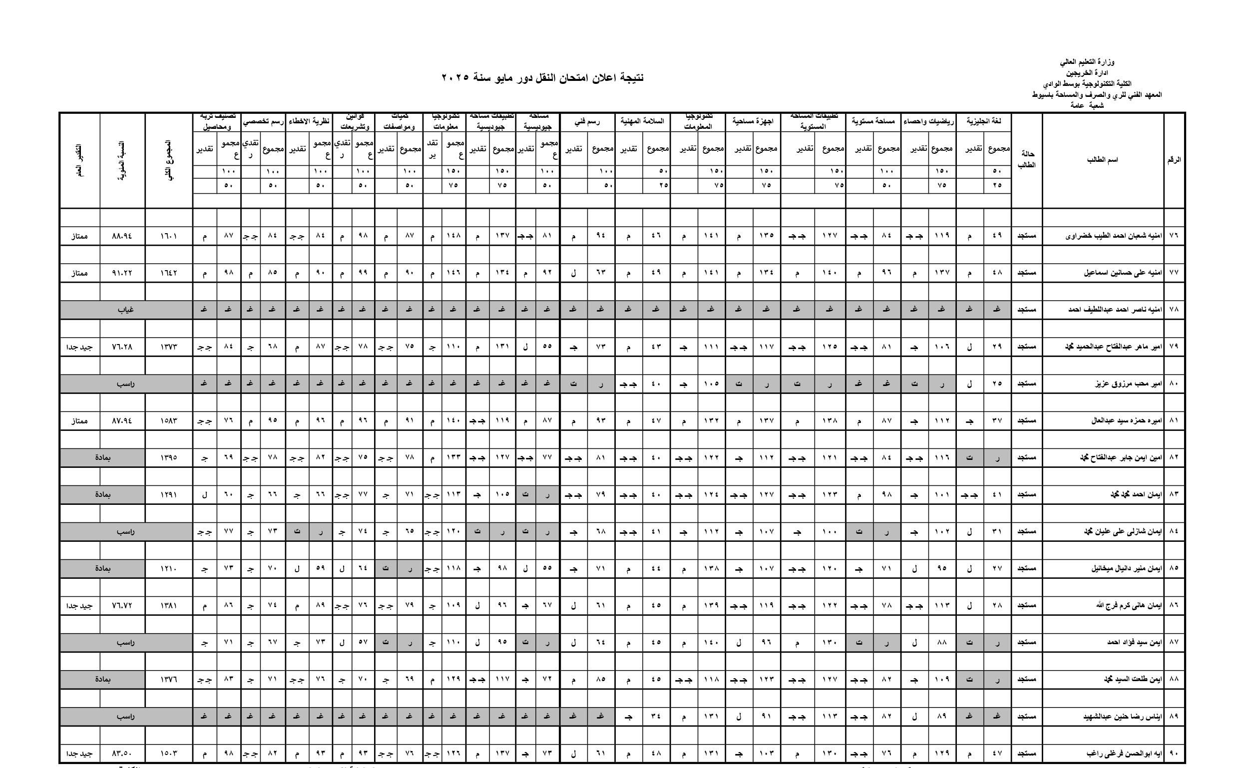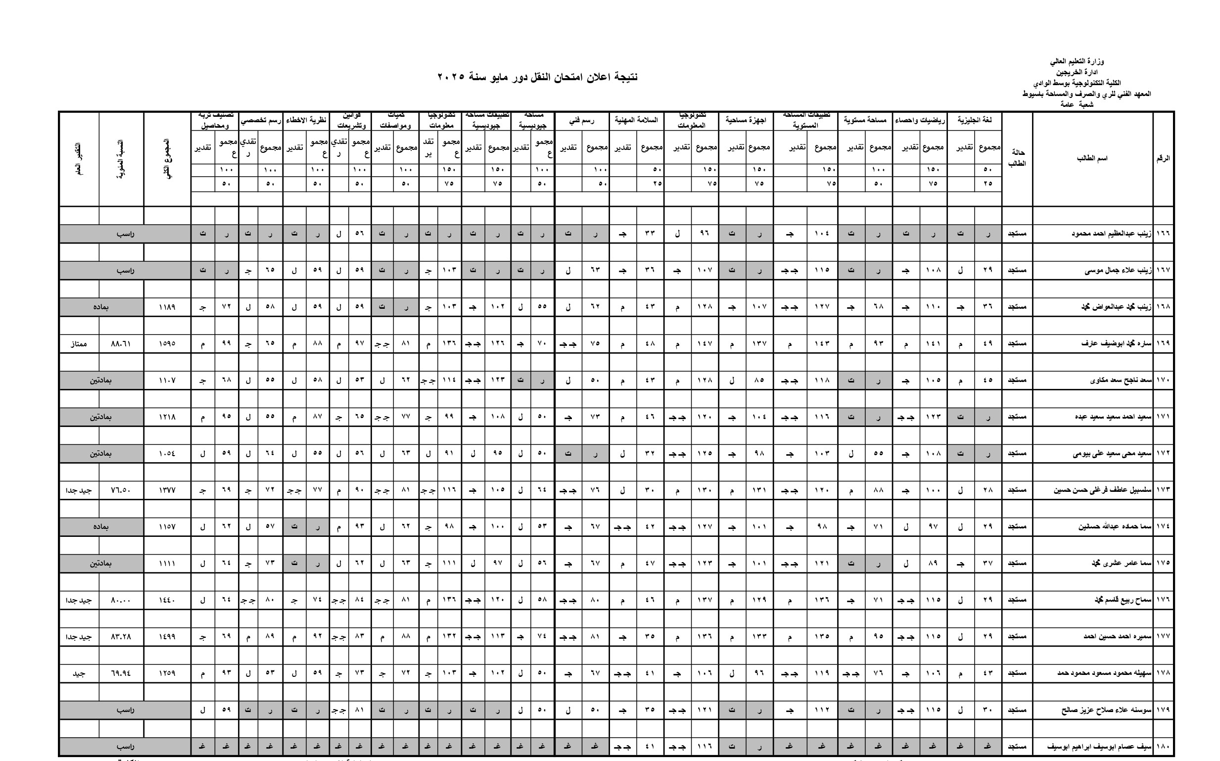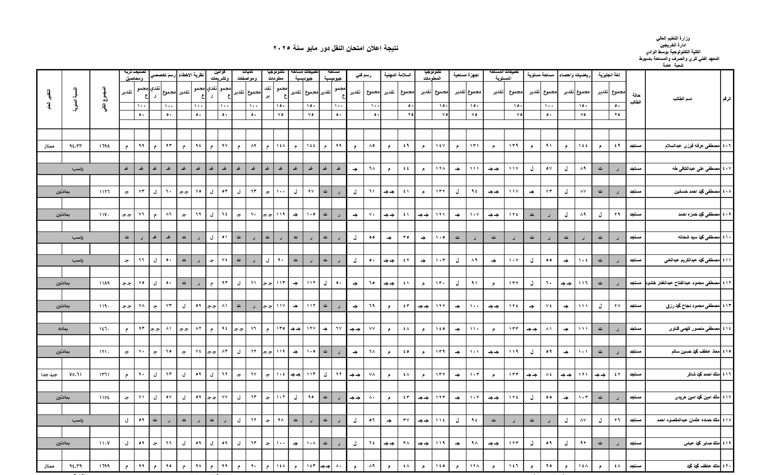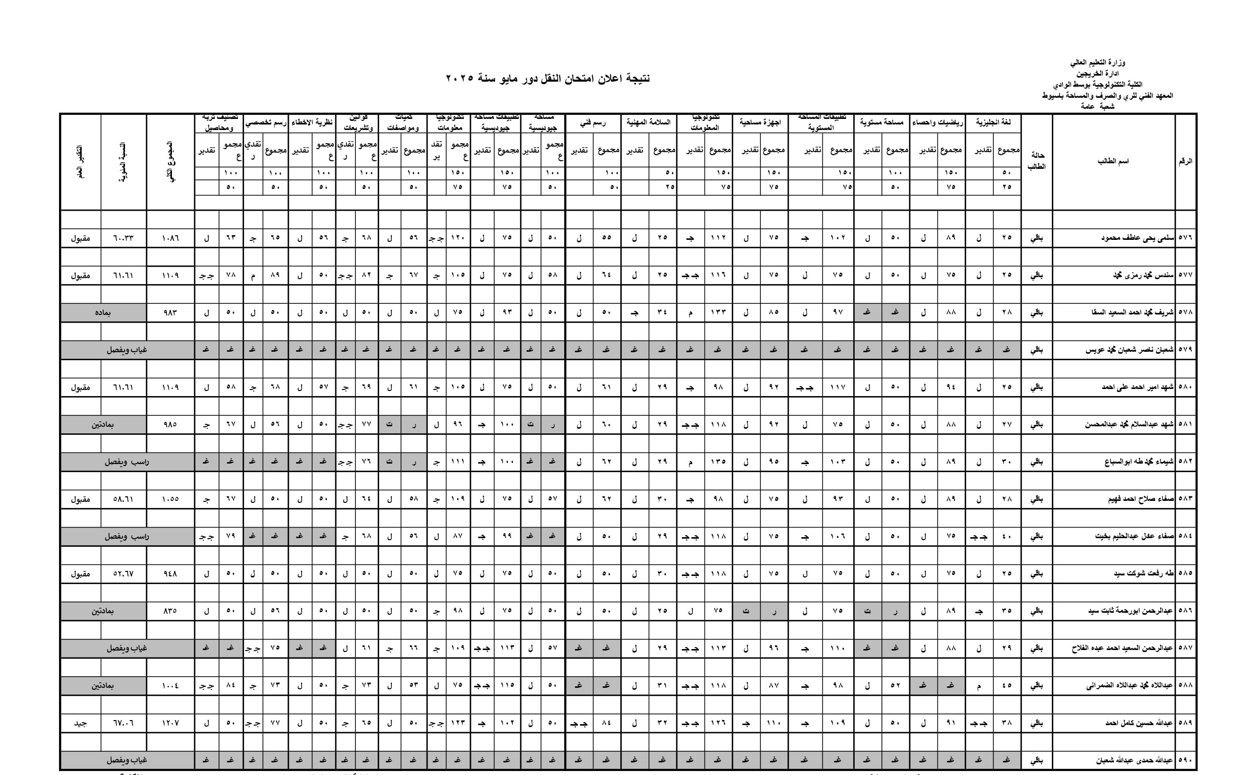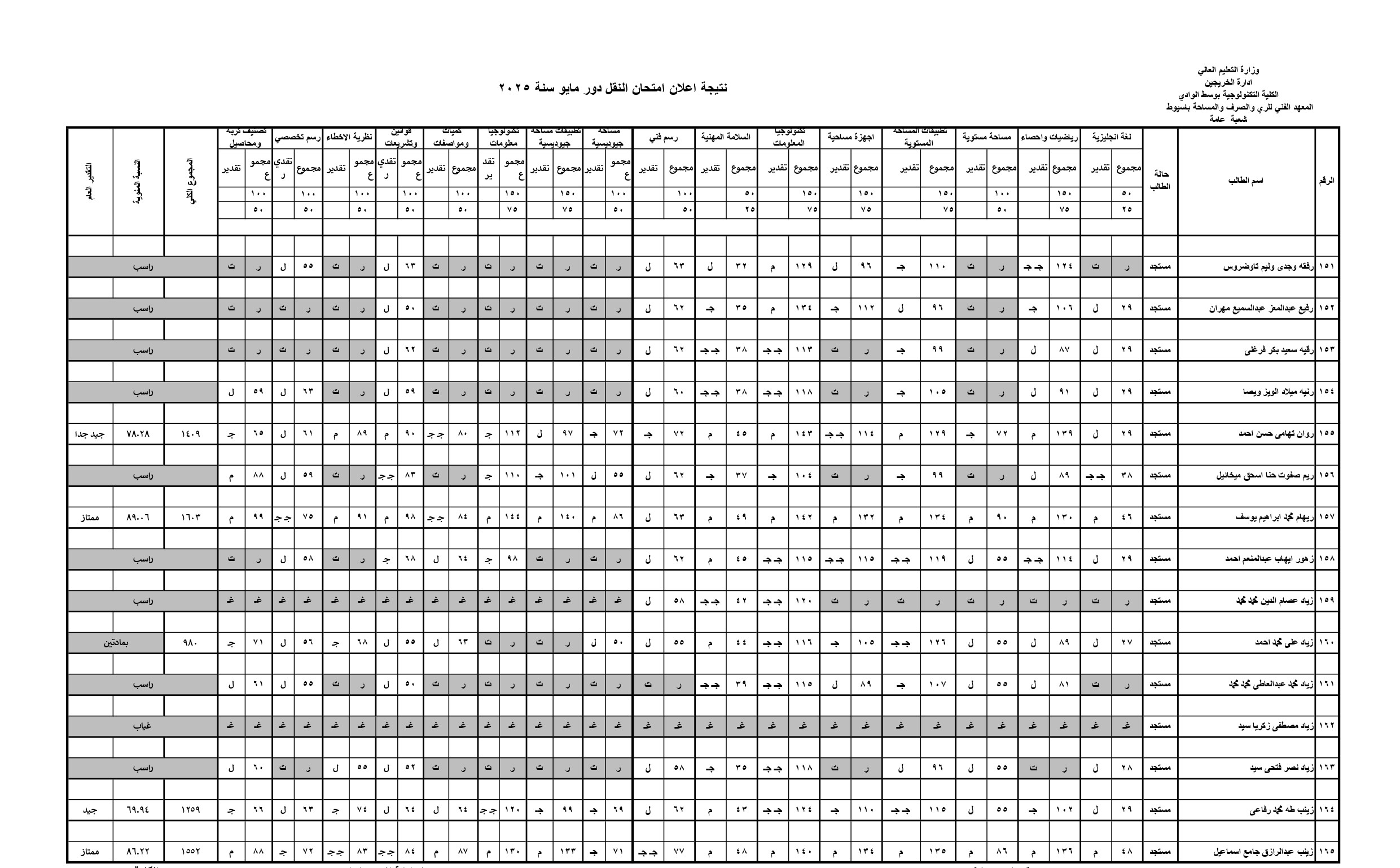 نتيجة الفرقة الثانية شعبة مساحة دور يناير 2025
