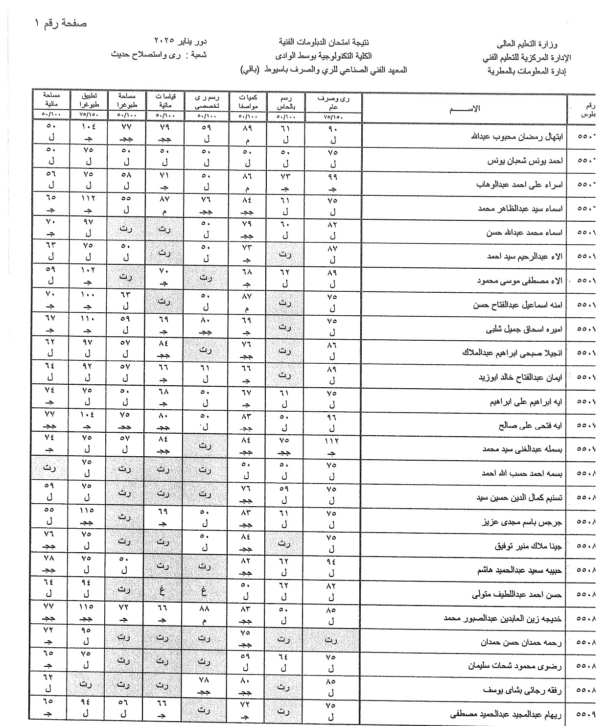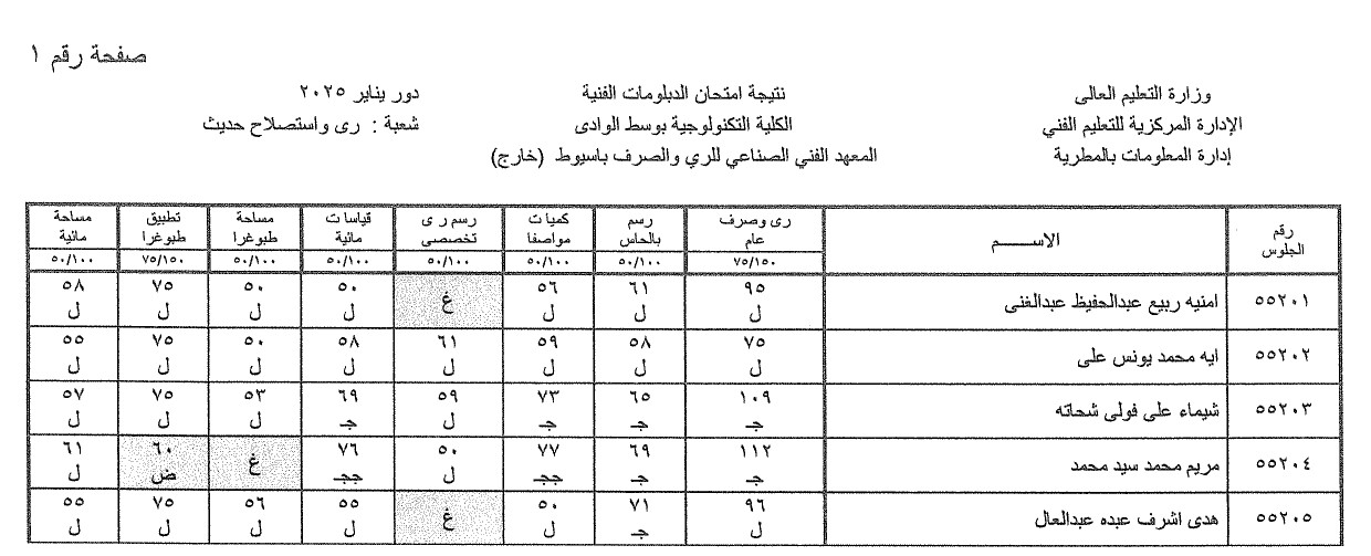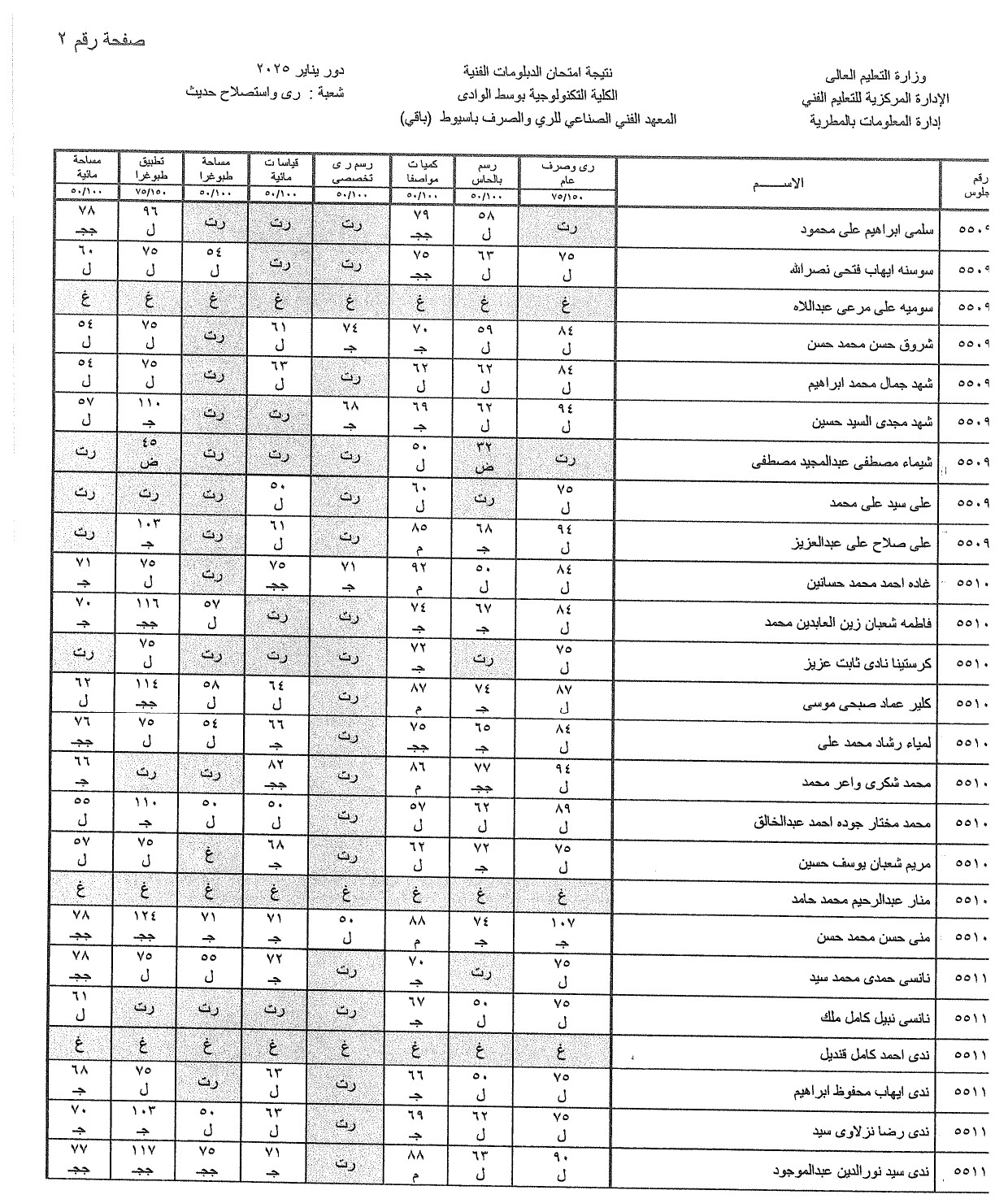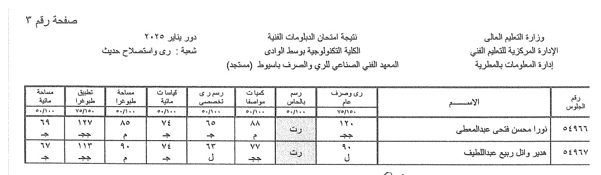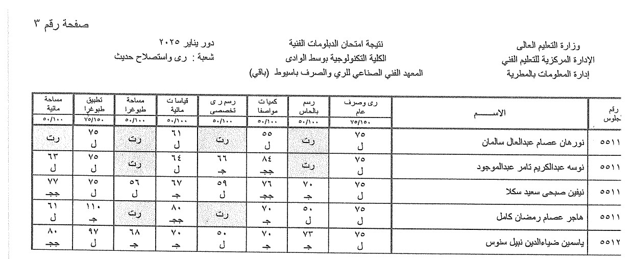 نتيجة الفرقة الثانية شعبة ري دور يناير 2025