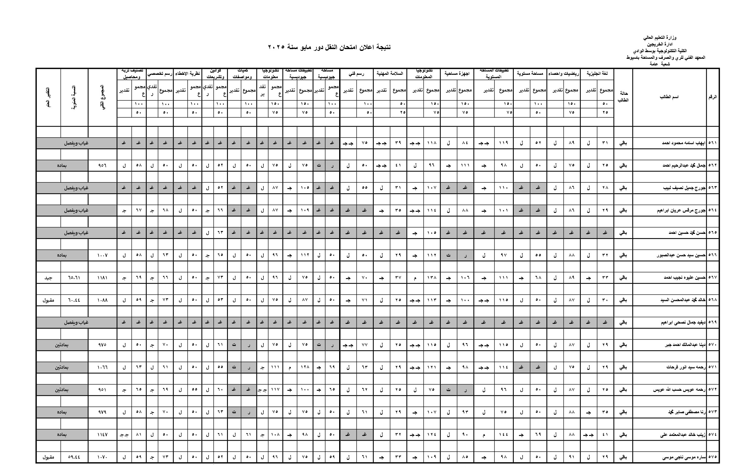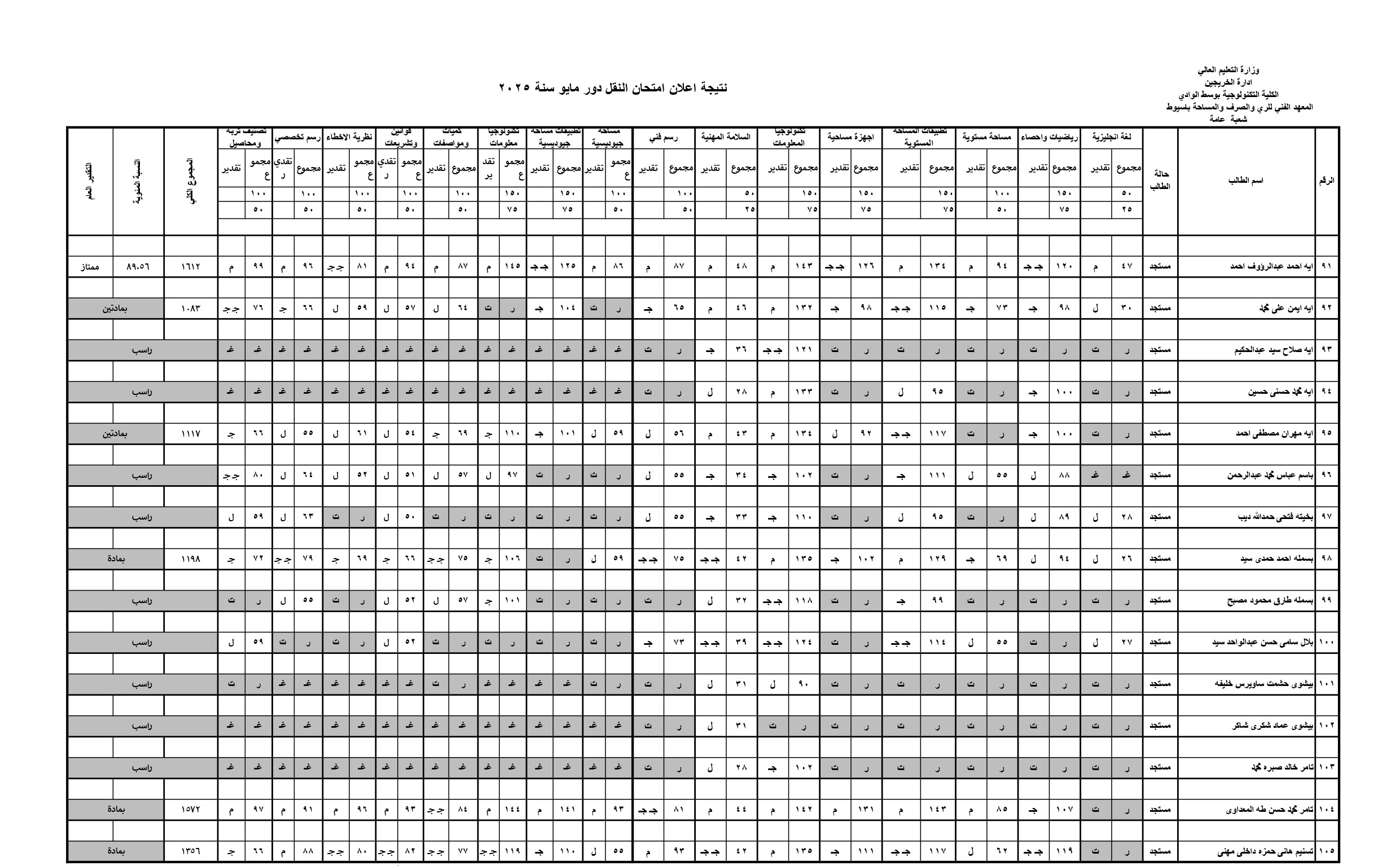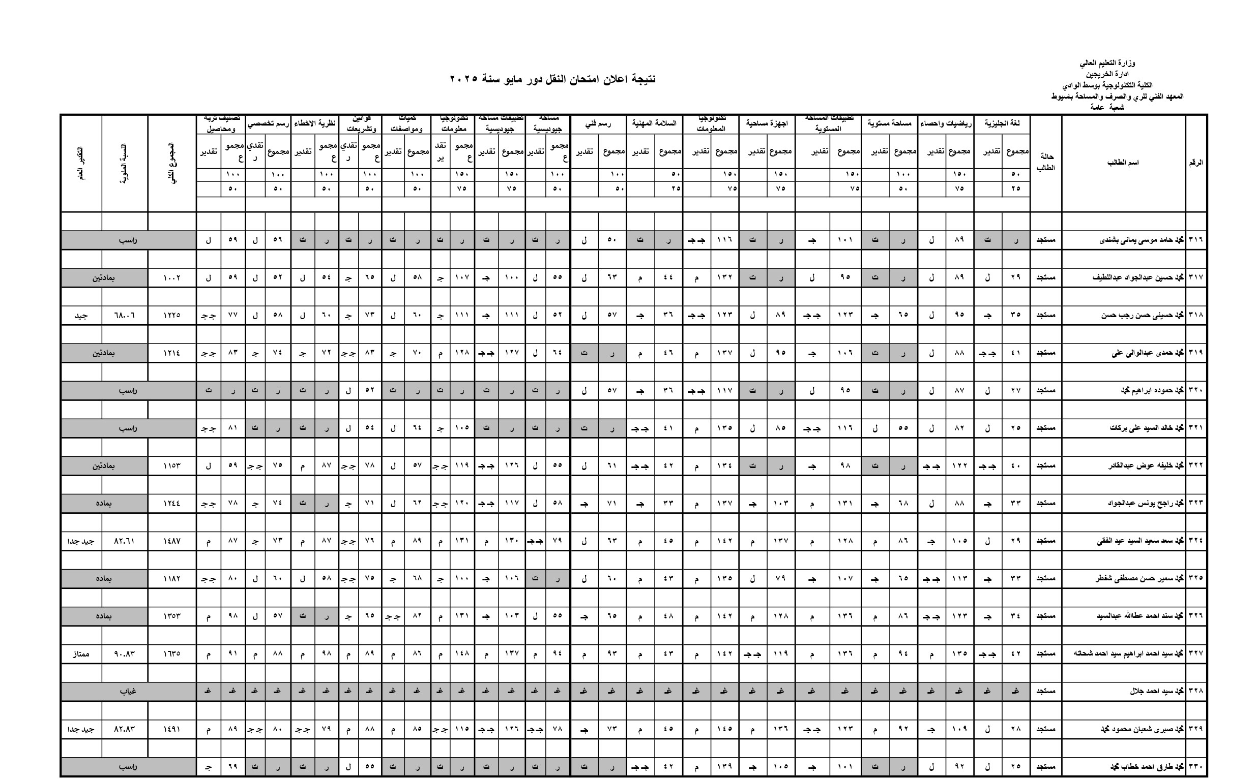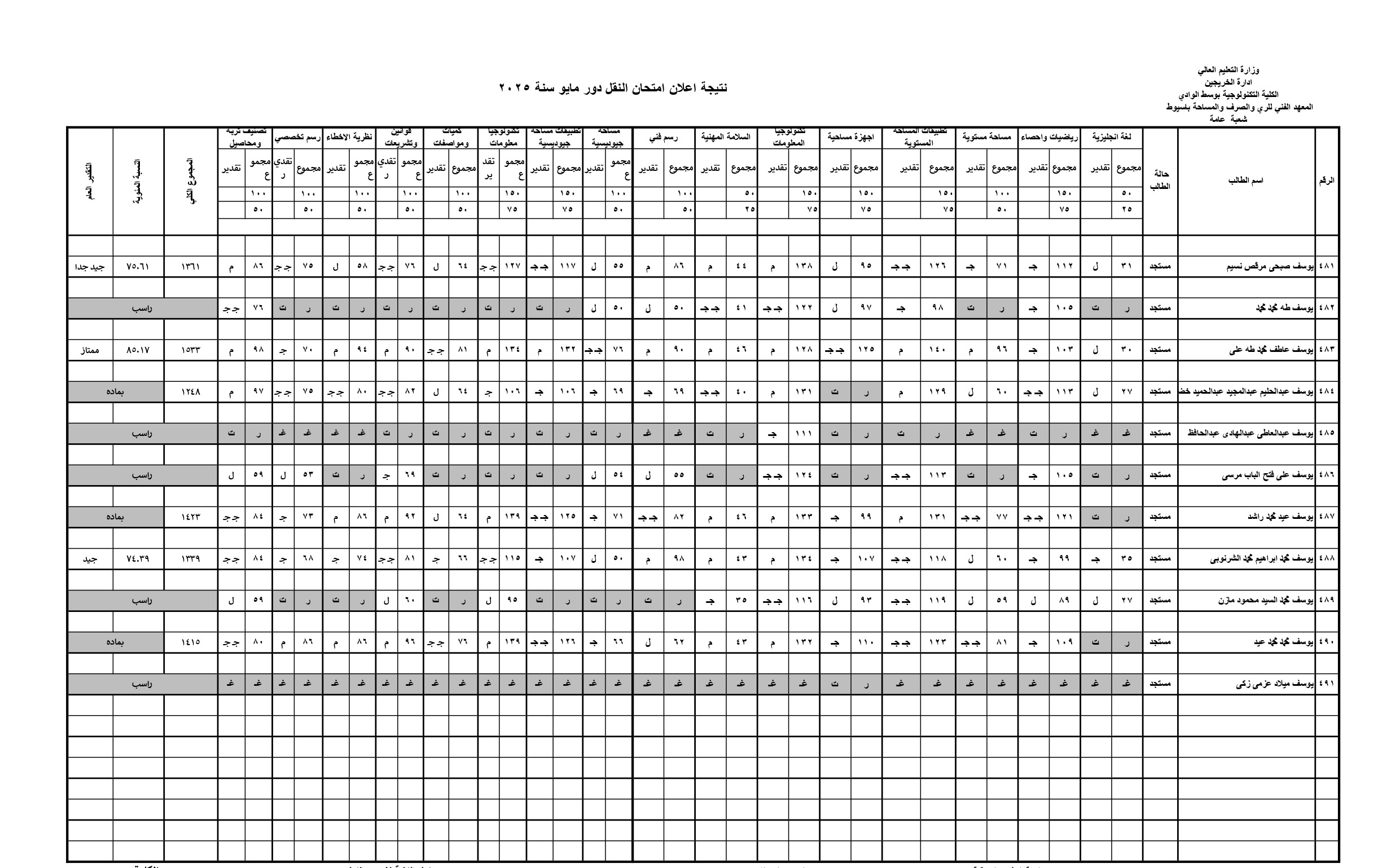 نتيجة الفرقة الثانية شعبة ري دور يناير 2025