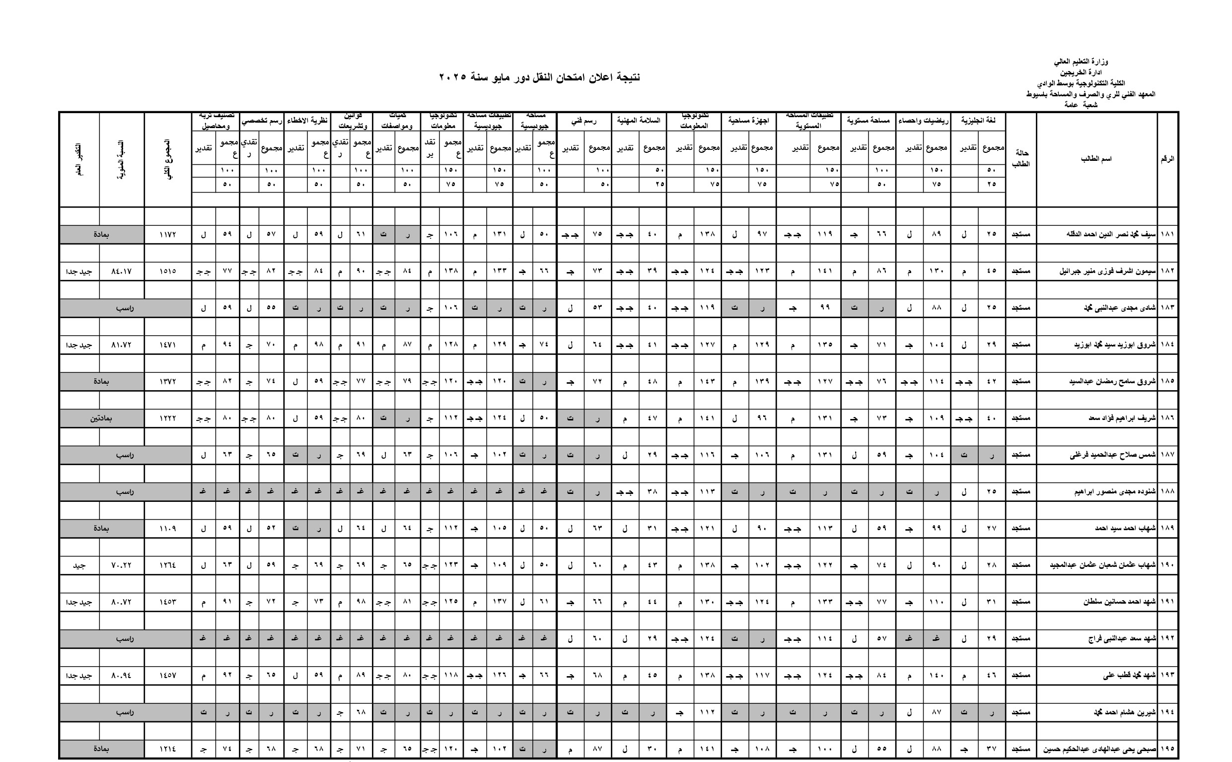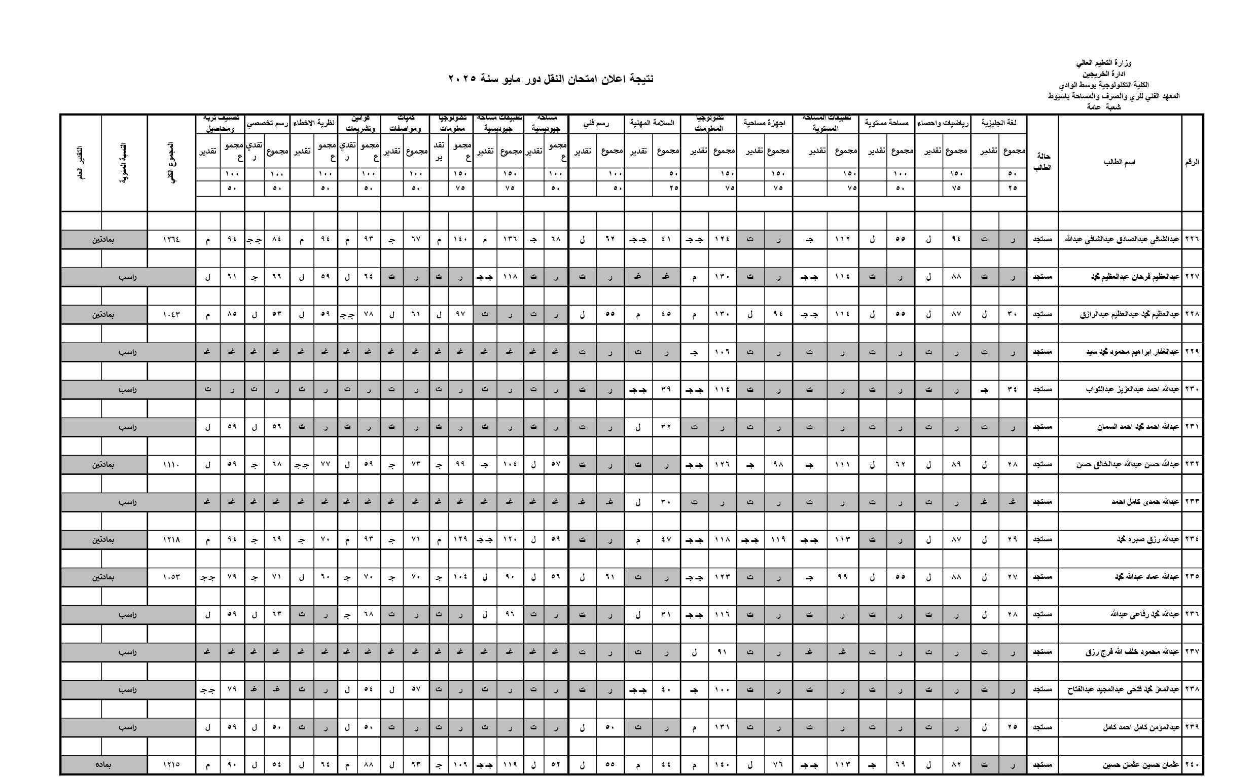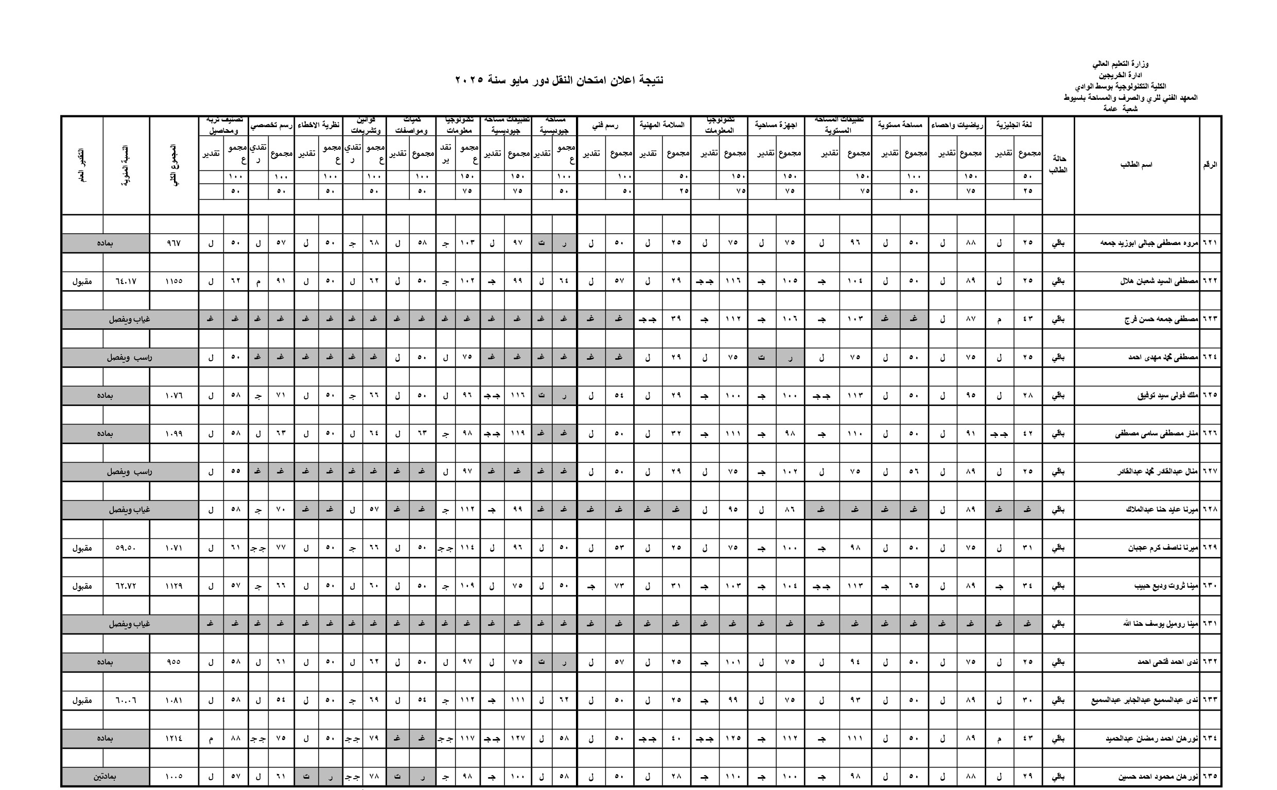نتيجة الفرقة الثانية شعبة ري دور يناير 2025